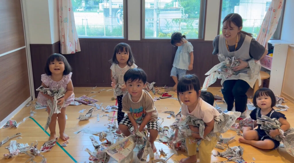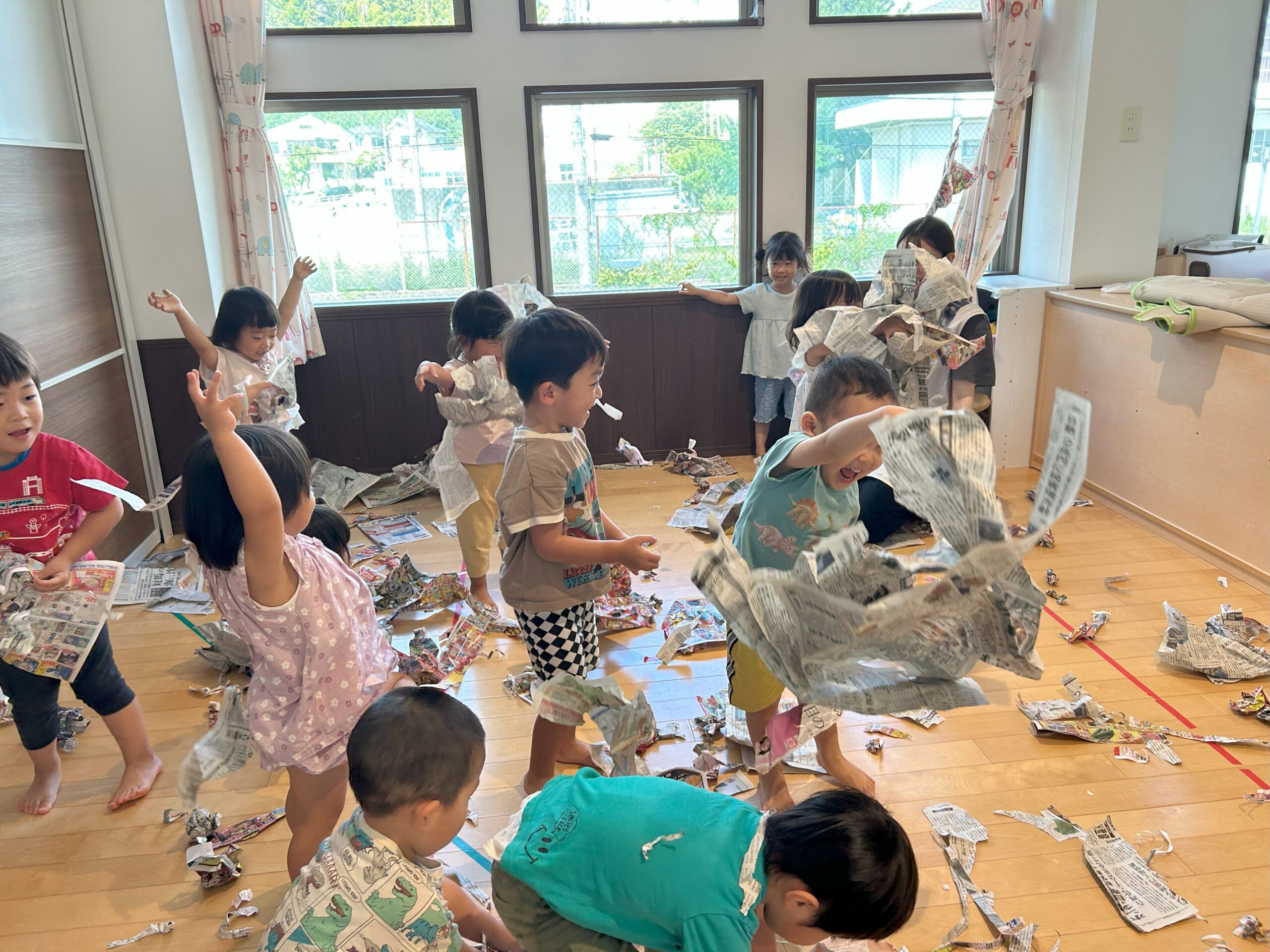 新聞と広告遊び☆(きりん組:2歳児) 公開済み: 2025年9月1日更新: 2025年9月26日作成者: sakuranosatoカテゴリー: さくらの里保育園, さくらの里保育園ブログ 沢山新聞や広告を集めて・・・ 「それ~」で上に投げて楽しんだよ!