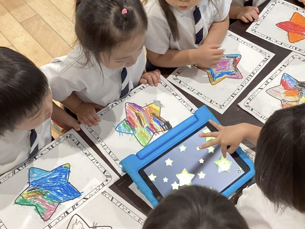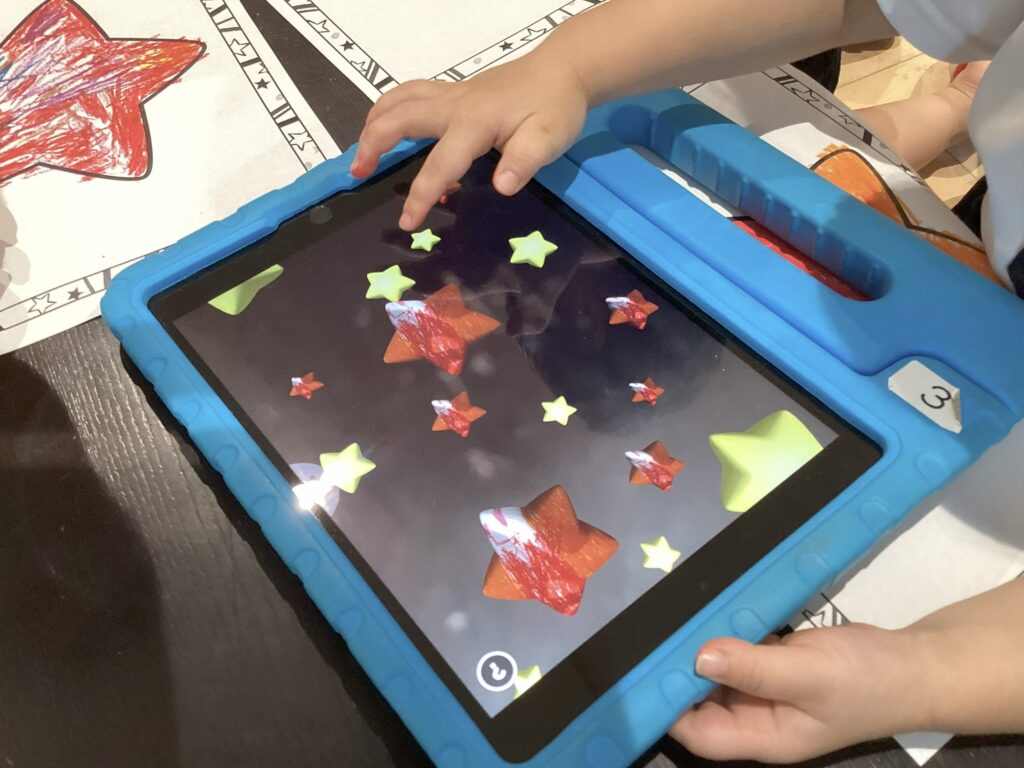 プログラミング【マジカルレンズ】 (たんぽぽ組:3歳児) 公開済み: 2025年9月10日更新: 2025年9月26日作成者: sakuranosatoカテゴリー: さくらの里保育園, さくらの里保育園ブログ 自分の塗り絵が浮かび上がるマジカルレンズをしています☆ 絵をタップするとキラキラと音も鳴るよ!
