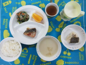 11月7日(木) 給食・おやつ献立 〈給食〉 ・ごはん ・すまし汁(キャベツ・小松菜) ・さばのみそ煮 ・じゃが芋炒め ・りんご 〈おやつ〉 ・牛乳 ・焼きうどん 公開済み: 2024年11月7日更新: 2024年11月12日作成者: hayamanookaカテゴリー: 端山の丘こども園給食