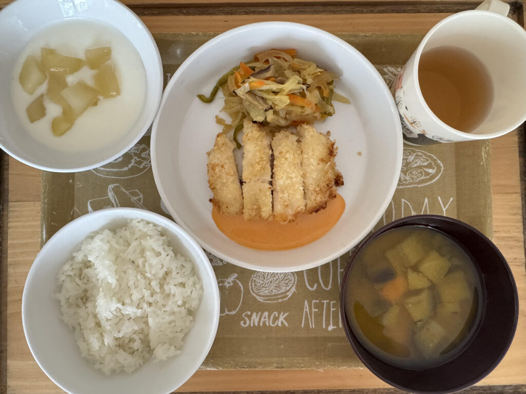 9月30日(火)の給食とおやつ 公開済み: 2025年10月2日更新: 2025年10月2日作成者: sakuranosatoカテゴリー: さくらの里保育園, さくらの里保育園園・給食だより 【給食】 ごはん みそ汁 チキンカツ 野菜のカレー炒め 【おやつ】 りんごヨーグルト