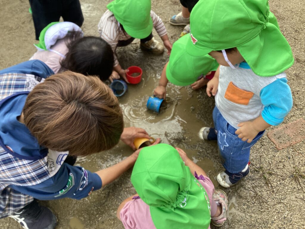 泥んこ遊び、大好き☆(うさぎ組:1歳児) 公開済み: 2025年10月3日更新: 2025年10月24日作成者: sakuranosatoカテゴリー: さくらの里保育園, さくらの里保育園ブログ 雨上がりの園庭で泥んこあそびをしたよ。感触が気持ち良いね☺