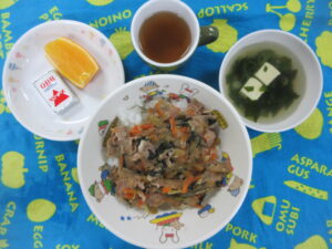 10月4日(土) 給食献立 公開済み: 2025年10月4日更新: 2025年10月10日作成者: hayamanookaカテゴリー: 端山の丘こども園給食 <給食> 豚丼 豆腐スープ(わかめ) オレンジ ベビーチーズ 関連記事 12月17日(火) 給食・おやつ献立 〈給食〉 ・ごはん ・みそ汁(小松菜・油揚げ) ・ぶり大根 ・もやしとわかめのナムル ・バナナ 〈おやつ〉 ・牛乳 ・米粉蒸しパン(レーズン) 公開済み: 2024年12月17日更新: 2024年12月17日作成者: hayamanookaカテゴリー: 端山の丘こども園給食 3月22日(金) 給食・おやつ献立 〈給食〉 ・カレーライス ・ほうれん草ののり和え ・ベビーチーズ ・オレンジ 〈おやつ〉 ・牛乳 ・きつねご飯 公開済み: 2024年3月22日更新: 2024年3月26日作成者: hayamanookaカテゴリー: 端山の丘こども園給食 4月3日(木) 給食・おやつ献立 <給食> 御飯 かぼちゃ汁(えのき) さけの甘みそ焼き なばなのごま和え(キャベツ) りんご <おやつ> 牛乳 米粉のもっちりバナナパン 公開済み: 2025年4月3日更新: 2025年4月4日作成者: hayamanookaカテゴリー: 端山の丘こども園給食