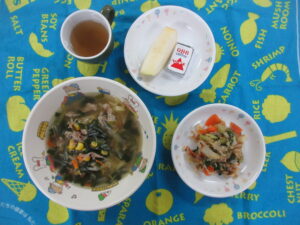 10月11日(土) 給食献立 公開済み: 2025年10月11日更新: 2025年10月14日作成者: hayamanookaカテゴリー: 端山の丘こども園給食 <給食> ラーメン(もやし・ニラ) チンゲン菜のおかか和え りんご ベビーチーズ 関連記事 6月17日(土) 給食献立 〈給食〉 ・けんちんうどん ・キャベツとツナの炒め煮 ・オレンジ ・ベビーチーズ 公開済み: 2023年6月17日更新: 2023年6月20日作成者: hayamanookaカテゴリー: 端山の丘こども園給食 5月10日(土) 給食・おやつ献立 <給食> みそ炒め丼 豆腐のすまし汁(小松菜) りんご ベビーチーズ 公開済み: 2025年5月10日更新: 2025年5月14日作成者: hayamanookaカテゴリー: 端山の丘こども園給食 3月26日 給食 てりやき野菜丼 すまし汁(白菜、えのき) みかん缶 公開済み: 2022年3月28日更新: 2022年3月28日作成者: hayamanookaカテゴリー: 端山の丘こども園給食