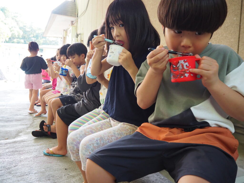 ん~♪冷たくて最高!(ゆり、5歳児) 公開済み: 2025年10月16日更新: 2025年10月16日作成者: hayamanookaカテゴリー: 端山の丘こども園ブログ 朝晩しのぎやすくなりましたが、日中はまだまだ暑い! という事で、おやつにかき氷をいただきました。冷たくて~甘くて~美味しいかき氷にみんな大喜びでした! 関連記事 ハイテクやな!(ゆり、5歳児) 公開済み: 2022年7月25日更新: 2022年7月25日作成者: hayamanookaカテゴリー: 端山の丘こども園ブログ みんな真剣に聞いています(さくら、4歳児) 醍醐消防分署の消防士さんが来て下さり、火災を想定した避難訓練をしました。「もしも」に備える事はとても大切です。 公開済み: 2024年11月1日更新: 2024年11月1日作成者: hayamanookaカテゴリー: 端山の丘こども園ブログ ペンギンさん近くてびっくりなんですけど?(きりん、2歳児) 園外保育で京都市水族館に行きました。オオサンショウウオや、アザラシの大きさにビックリの子供達。「ペンギンさん!!」とお話ししながら見ている姿はとても可愛かったです。 公開済み: 2024年10月11日更新: 2024年10月11日作成者: hayamanookaカテゴリー: 端山の丘こども園ブログ