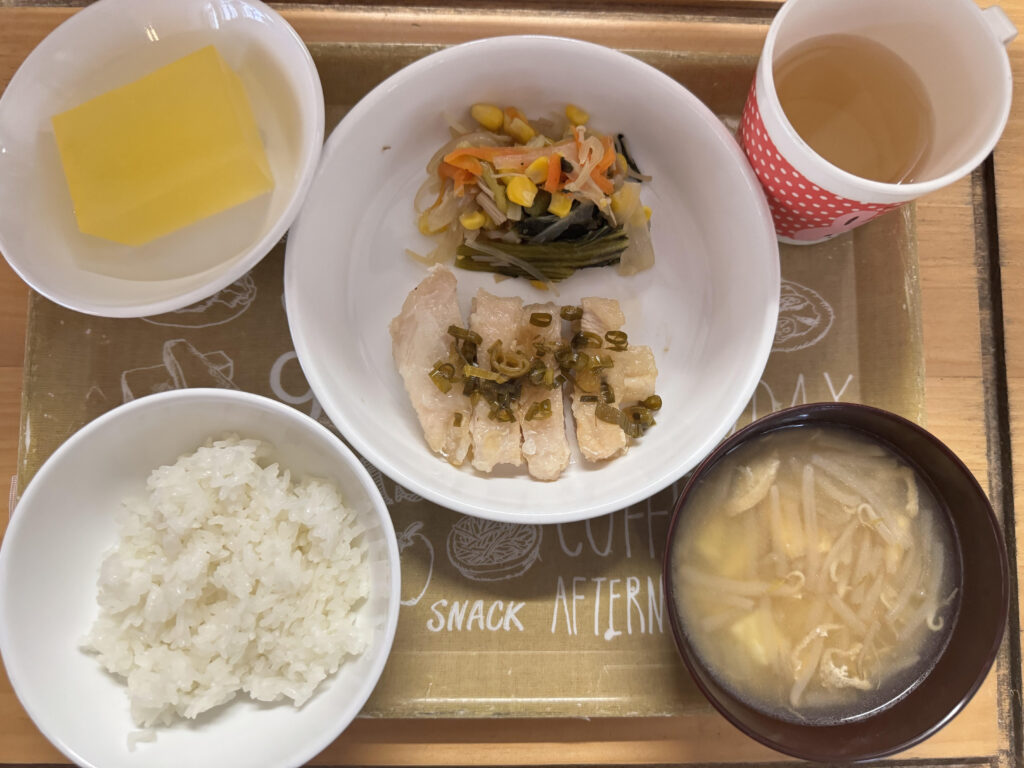 10月16日(木)の給食とおやつ 公開済み: 2025年10月16日更新: 2025年10月16日作成者: sakuranosatoカテゴリー: さくらの里保育園, さくらの里保育園園・給食だより 【給食】 ごはん みそ汁 鶏むね肉のねぎソース チンゲン菜のコーン炒め 【おやつ】 オレンジゼリー