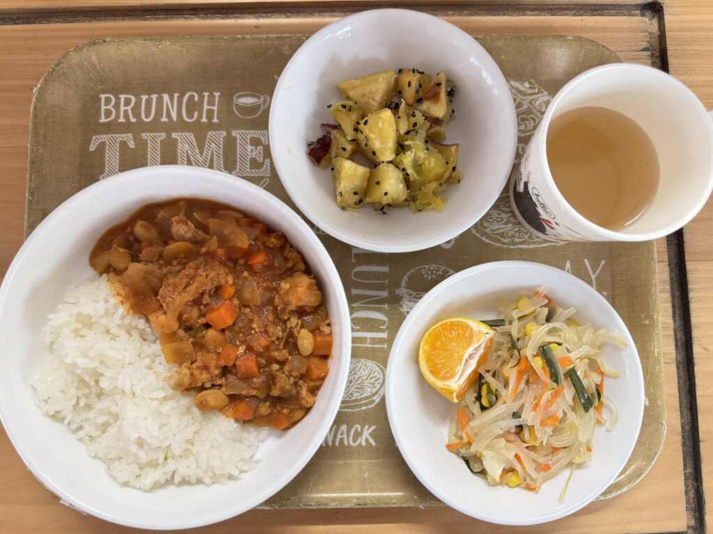 10月17日(金)の給食とおやつ 公開済み: 2025年10月17日更新: 2025年10月17日作成者: sakuranosatoカテゴリー: さくらの里保育園, さくらの里保育園園・給食だより 【給食】 ドライカレーライス キャベツのツルツル炒め みかん 【おやつ】 大学芋