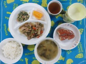10月23日(木) 給食・おやつ献立 公開済み: 2025年10月23日更新: 2025年10月24日作成者: hayamanookaカテゴリー: 端山の丘こども園給食 <給食> 御飯 みそ汁(チンゲン菜、あげ) 筑前煮(だいこん) ほうれん草のツナ和え オレンジ <おやつ> 牛乳 揚げパン(事情により献立変更しています) 関連記事 10月24日給食 ハヤシライス バナナ ベビーチーズ 公開済み: 2020年10月24日更新: 2020年10月24日作成者: hayamanookaカテゴリー: 端山の丘こども園給食 10月8日(土) 給食献立 ・焼きそば ・オレンジ 公開済み: 2022年10月8日更新: 2022年10月17日作成者: hayamanookaカテゴリー: 端山の丘こども園給食 1月13日(金) 給食・おやつ献立 ・鶏肉と小松菜のクリームライス ・ひじきともやしのツナ酢あえ ・りんご 〈おやつ〉 ・牛乳 ・大学さといも 公開済み: 2023年1月13日更新: 2023年1月17日作成者: hayamanookaカテゴリー: 端山の丘こども園給食