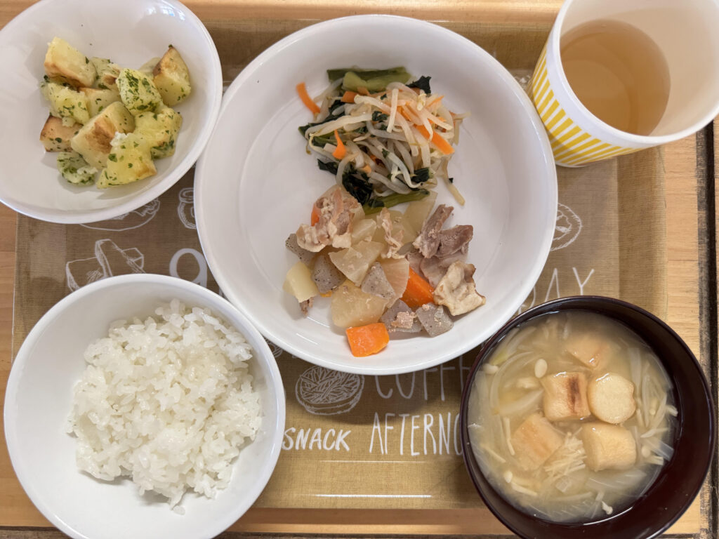 10月24日(金)の給食とおやつ 公開済み: 2025年10月24日更新: 2025年10月24日作成者: sakuranosatoカテゴリー: さくらの里保育園, さくらの里保育園園・給食だより 【給食】 ごはん みそ汁 大根と豚肉の煮物 もやしの中華風和え物 【おやつ】 じゃが芋のから揚げ