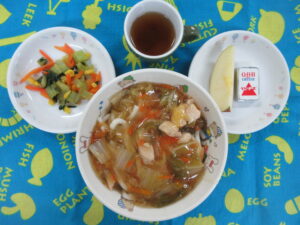 10月25日(土) 給食献立 公開済み: 2025年10月25日更新: 2025年10月25日作成者: hayamanookaカテゴリー: 端山の丘こども園給食 <給食> あんかけうどん チンゲン菜のコーン炒め りんご ベビーチーズ おかわり沢山してくれました☺ 関連記事 11月25日(土) 給食献立 〈給食〉 ・焼きビーフン(カレー) ・豆腐スープ(チンゲン菜・えのき) ・ベビーチーズ 公開済み: 2023年11月25日更新: 2023年12月1日作成者: hayamanookaカテゴリー: 端山の丘こども園給食 2月16日(金) 給食・おやつ献立 〈給食〉 ・ごはん ・みそ汁(豆腐・わかめ) ・大根と豚肉の炒め煮 ・小松菜のごまあえ ・りんご 〈おやつ〉 ・牛乳 ・ビーフン(カレー・豚) 公開済み: 2024年2月16日更新: 2024年2月19日作成者: hayamanookaカテゴリー: 端山の丘こども園給食 10月12日(水) 給食・おやつ献立 ・じゃこまぜごはん ・じゃが芋のスープ ・豚肉となすのなべしぎ ・かぶときゅうりのサラダ ・みかん缶 〈おやつ〉 ・牛乳 ・豆腐フルーツ寒天 公開済み: 2022年10月12日更新: 2022年10月17日作成者: hayamanookaカテゴリー: 端山の丘こども園給食
