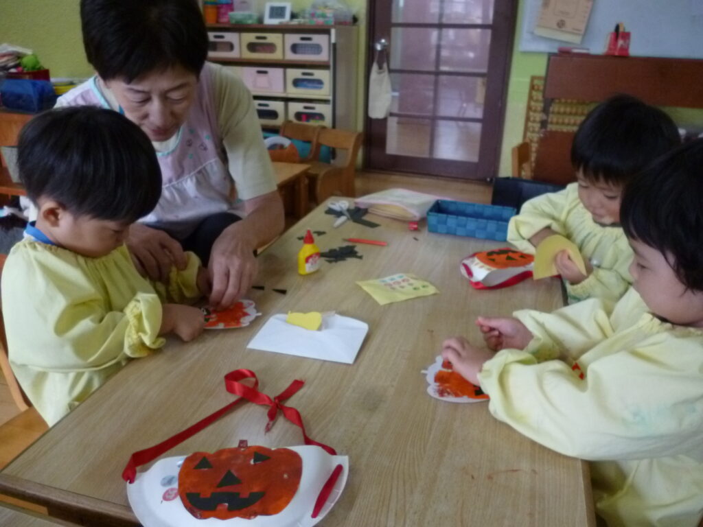 上手に作るよ~(きりん、2歳児) 公開済み: 2025年10月28日更新: 2025年10月28日作成者: hayamanookaカテゴリー: 端山の丘こども園ブログ ハロウィンバッグの作成をしました。こども園では28日にハロウィンパーティーがあります。仮装をして、このバッグの中にお菓子を入れてもらいます。その話をしたら、みんな「やったー」とはりきって制作していました。 関連記事 触った感触がどんどん変わるね!(さくら、4歳児) パン粉遊び。ザクザクする触感を楽しみ、水を入れると粘土みたいになり、パンみたいな匂いになり・・・・と、様々な五感をフル回転して遊んだパン粉。最後は人を作ったよ! 公開済み: 2025年8月26日更新: 2025年8月26日作成者: hayamanookaカテゴリー: 端山の丘こども園ブログ ここに貼るねんで(きりん、2歳児) 毎月楽しみにしている月刊絵本。シール貼りももちろん、色々な事を学べて大好きな時間です。 公開済み: 2023年9月20日更新: 2023年9月20日作成者: hayamanookaカテゴリー: 端山の丘こども園ブログ おてて、ぎゅーっとしたよ(うさぎ、0歳児、1歳児) 前期制作をしました。1歳児はマジックでお絵描き。0歳児は紙粘土に手形を押しました!完成をお楽しみに✨ 公開済み: 2022年8月17日更新: 2022年8月17日作成者: hayamanookaカテゴリー: 端山の丘こども園ブログ