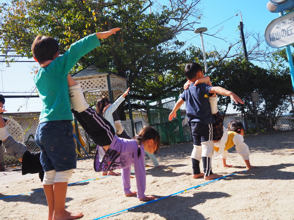 思い出を作ろう!(ゆり、5歳児) 公開済み: 2025年10月28日更新: 2025年10月28日作成者: hayamanookaカテゴリー: 端山の丘こども園ブログ 11月に開催される運動会に向けて頑張り中です!!年長児にとって最後の運動会。力一杯頑張りたいです。 関連記事 ふわふわ飛んで行ったよね!(たんぽぽ、3歳児) 絵画で「しゃぼん玉」を描きました! クレパスで〇を描いた所に水を塗って、さらに絵の具を塗っていくと・・・どんどんにじんで素敵なしゃぼん玉になりました!! 公開済み: 2025年6月6日更新: 2025年6月6日作成者: hayamanookaカテゴリー: 未分類, 端山の丘こども園ブログ 食べたいな~(うさぎ0歳児、1歳児) 白い絵の具を垂らして、手のひらで伸ばしていくと、冷たそうなかき氷が完成!美味しそうなシロップをスポンジに染み込ませて、ポンポンと味付けをしました。 公開済み: 2025年8月29日更新: 2025年8月29日作成者: hayamanookaカテゴリー: 端山の丘こども園ブログ 最初は恐る恐る・・・(うさぎ、0歳児、1歳児) 新聞紙を水で湿らせて遊びました! ビリビリ破った紙が、あっという間に小さくなって、不思議そうなみんな・・・・丸めたり並べたりして楽しみました。 公開済み: 2024年5月23日更新: 2024年5月23日作成者: hayamanookaカテゴリー: 端山の丘こども園ブログ