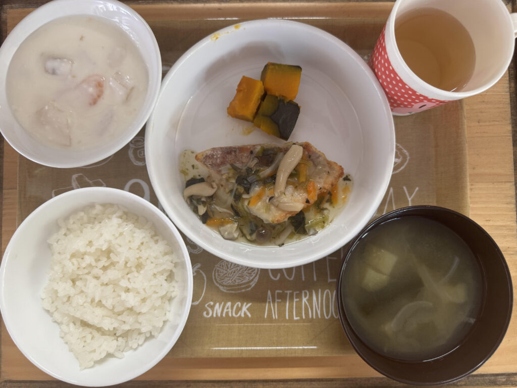 10月29日(水)の給食とおやつ 公開済み: 2025年10月29日更新: 2025年10月29日作成者: sakuranosatoカテゴリー: さくらの里保育園, さくらの里保育園園・給食だより 【給食】 ごはん みそ汁 揚げ魚の野菜あんかけ かぼちゃの甘煮 【おやつ】 フルーツヨーグルト