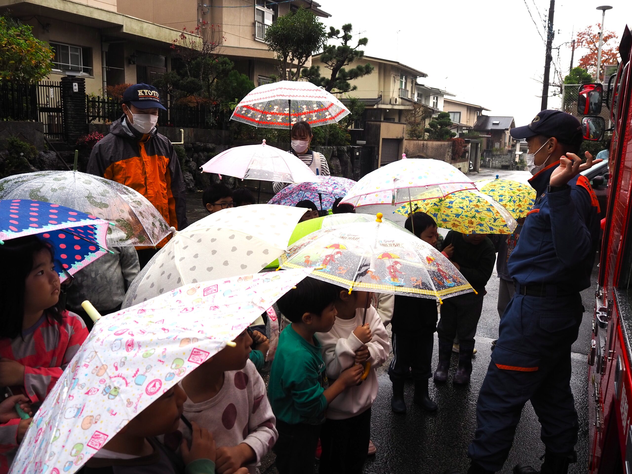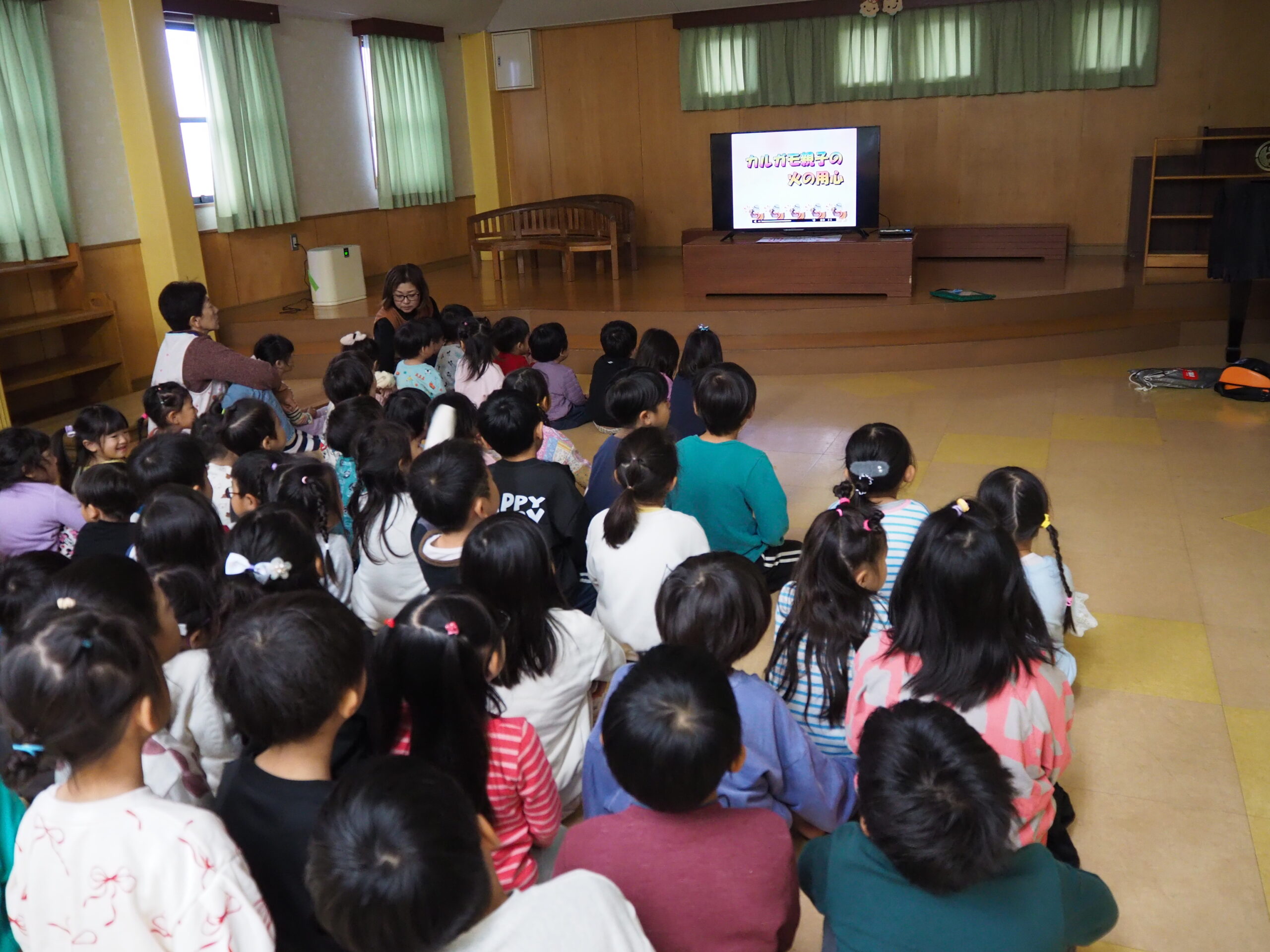 真剣な眼差しが、みんなを守るんだね(ゆり、5歳児) 公開済み: 2025年11月26日更新: 2025年11月26日作成者: hayamanookaカテゴリー: 端山の丘こども園ブログ 醍醐消防分署の消防士さんに来ていただき”火災”を想定した避難訓練を行いました。火の怖さについてのお話をしっかり聞いたり、間近で消防車を見せてもらいました。 関連記事 全集中!パズルの型!(うさぎ0歳児、1歳児) 絵合わせパズルをして遊びました。型をはめていくのが難しそうでしたが、一度覚えると次々と上手にはめて行きました。集中して夢中になってやっていました。 公開済み: 2023年12月7日更新: 2023年12月7日作成者: hayamanookaカテゴリー: 端山の丘こども園ブログ 可愛い凧にするんだ♪(きりん、2歳児) お正月遊びの凧を、みんなで一緒に作りました。袋に、丸シールを好きなように貼ることを喜んでやっていました。 公開済み: 2024年1月11日更新: 2024年1月11日作成者: hayamanookaカテゴリー: 端山の丘こども園ブログ ぞうさん、大きかったね!(きりん、2歳児) 京都市動物園へ、初めての園外保育に行きました。みんな頑張って歩いて、きりんさんもぞうさんも見られましたよ。キラキラ笑顔がとっても可愛かったです? 公開済み: 2024年4月18日更新: 2024年4月18日作成者: hayamanookaカテゴリー: 端山の丘こども園ブログ