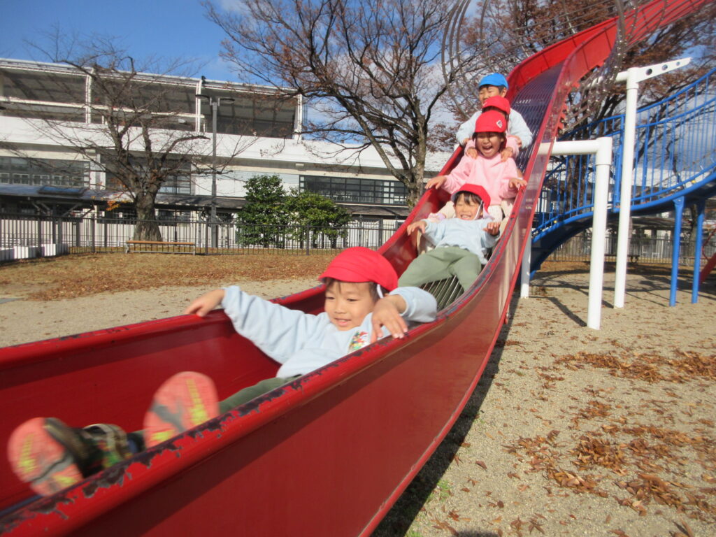 たのしー!!!(さくら、4歳児) 公開済み: 2025年12月18日更新: 2025年12月18日作成者: hayamanookaカテゴリー: 端山の丘こども園ブログ 京都競馬場 緑の広場へ遊びに行きました。新しい遊具も加わり、体を存分に動かして楽しむ事が出来ました。またみんなで行きたい場所の一つです。 関連記事 大型絵本を見ました(うさぎ0歳児、1歳児) 絵本が大好きなうさぎ組さん。大きな絵本に、みんな釘付けでした! 公開済み: 2023年5月11日更新: 2023年5月11日作成者: hayamanookaカテゴリー: 端山の丘こども園ブログ ボールと友達になろうね(ゆり、5歳児) サッカー練習が始まりました。 ボールに慣れる所からで、少しずつ蹴って・走って・追いかけて と頑張ります!! 公開済み: 2023年10月19日更新: 2023年10月19日作成者: hayamanookaカテゴリー: 端山の丘こども園ブログ あっという間に流れて行く? あれあれあれれ(たんぽぽ、3歳児) 竹遊び。醤油さしの魚がどんどん水に流れて来てる~!! 上手につかめたかな? 公開済み: 2022年9月16日更新: 2022年9月16日作成者: hayamanookaカテゴリー: 端山の丘こども園ブログ
