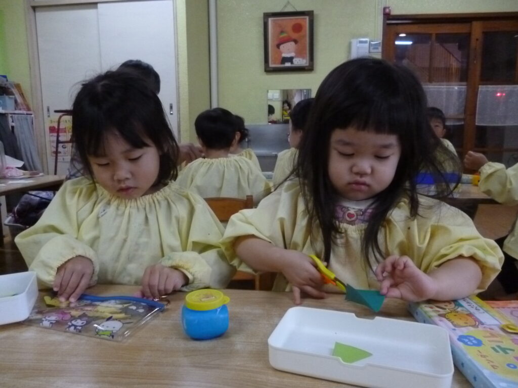 慎重にちょきちょき(きりん、2歳児) 公開済み: 2025年12月18日更新: 2025年12月18日作成者: hayamanookaカテゴリー: 端山の丘こども園ブログ クリスマスカードの制作をしました。ハサミにも少しづつ慣れてきて、上手に切れるようになってきました。今回は線の上を切ることに挑戦!集中して切っていきました。 関連記事 ぺりぺりむけるね!(たんぽぽ、3歳児) 給食室のお手伝いでトウモロコシの皮むきをしました。皮をむいていくと、だんだん黄色の実が見えてきて大喜びでした。 公開済み: 2025年7月24日更新: 2025年7月24日作成者: hayamanookaカテゴリー: 端山の丘こども園ブログ さくらの里保育園との練習試合(ゆり、5歳児) 公開済み: 2022年11月25日更新: 2022年11月25日作成者: hayamanookaカテゴリー: 端山の丘こども園ブログ みんなで遊ぶと楽しいね(さくら、4歳児) きりん組さんと一緒にコミュニティホールで遊びました。さくら組さんは、とっても張り切っていました。 公開済み: 2023年3月2日更新: 2023年3月2日作成者: hayamanookaカテゴリー: 端山の丘こども園ブログ