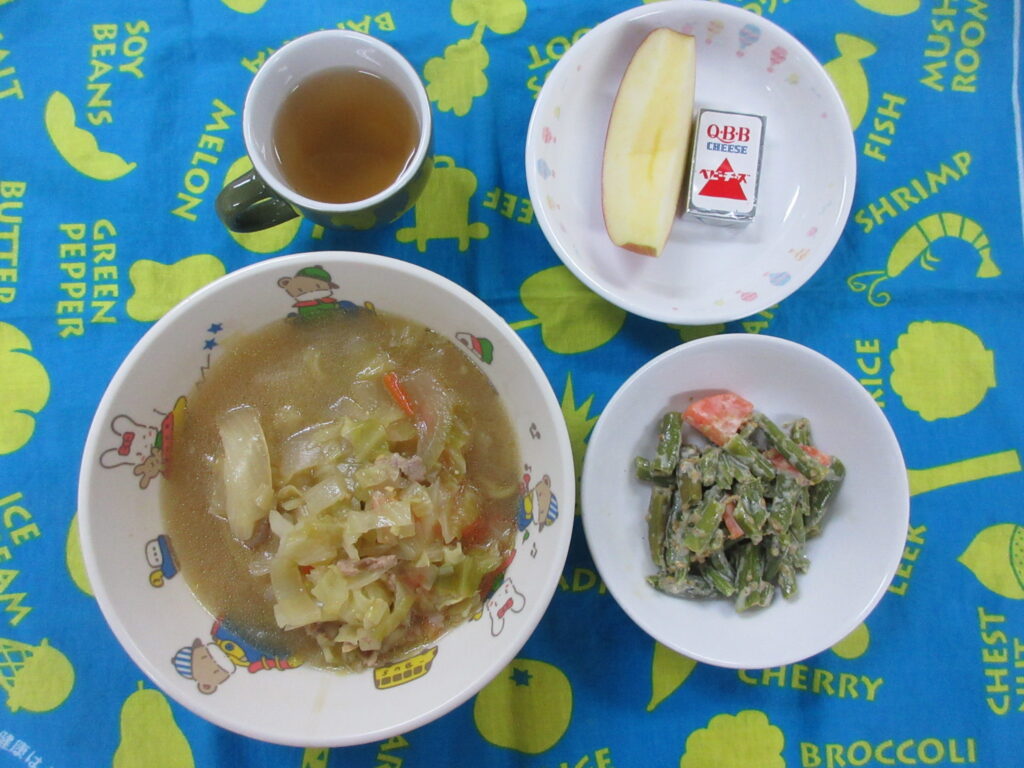 12月20日(土) 給食献立 公開済み: 2025年12月20日更新: 2025年12月20日作成者: hayamanookaカテゴリー: 端山の丘こども園給食 <給食> みそラーメン いんげんのごまマヨあえ りんご(幼児) バナナ(乳児) ベビーチーズ 関連記事 7月19日(金)給食・おやつ献立 <給食> 御飯 豆腐すまし汁(わかめ) さけのちゃんちゃん焼き(しめじ) トマトのツナ和え バナナ 今日のちゃんちゃん焼きに入っているキャベツはゆり組さんが「ちぎる」お手伝いをしてくれました♡ <おやつ […] 公開済み: 2024年7月19日更新: 2024年7月20日作成者: hayamanookaカテゴリー: 端山の丘こども園給食 ☆9月お誕生会メニュー ☆ 9月のお誕生会メニューは〝うさぎランチ〟でした。 ウインナーの耳がとっても可愛いうさぎさんでした。 ウサギライス クラムチャウダー 鶏肉のマーマレード焼き パスタサラダ 梨 公開済み: 2020年9月30日更新: 2020年9月30日作成者: hayamanookaカテゴリー: 端山の丘こども園給食 12月9日 給食 ごはん みそ汁(もやし、さつまいも) 白身魚の包み焼き れんこんのきんぷら りんご 公開済み: 2021年12月10日更新: 2021年12月10日作成者: hayamanookaカテゴリー: 端山の丘こども園給食