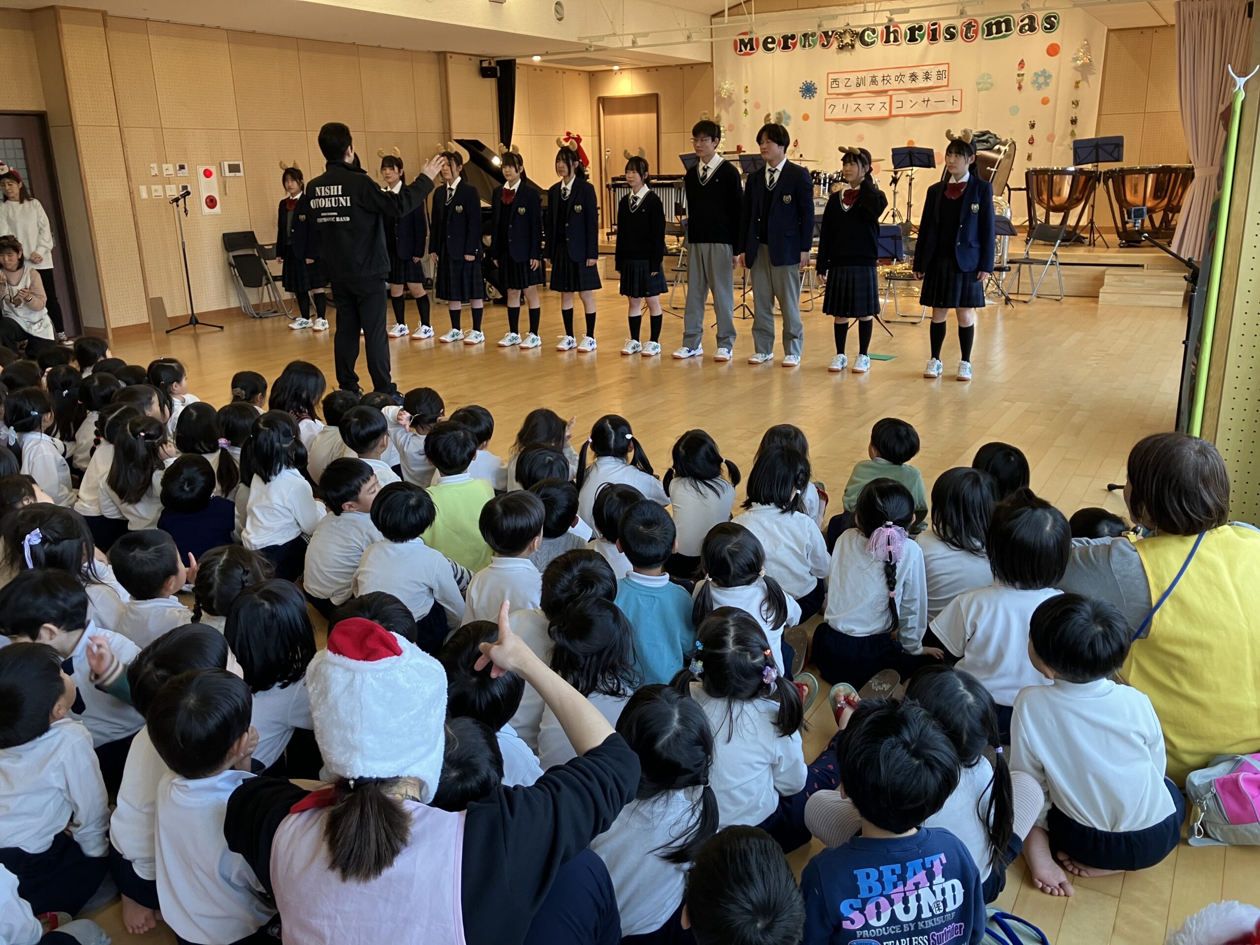 クリスマスコンサート🎄 公開済み: 2025年12月22日更新: 2025年12月26日作成者: sakuranosatoカテゴリー: さくらの里保育園, さくらの里保育園ブログ 西乙訓高校の吹奏楽部の皆さんが素敵な演奏をしに来てくれました!子ども達の知っている曲の演奏に、リズムに乗って手拍子をしながら素敵な時間を過ごしましたよ♪