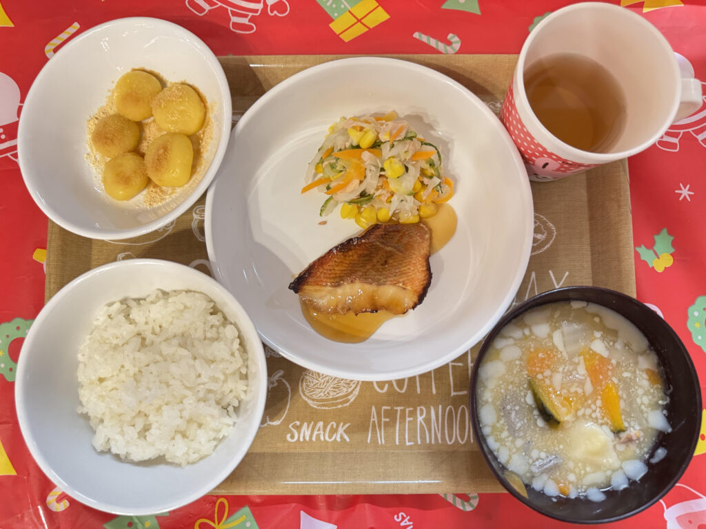 12月22日(月)の給食とおやつ 公開済み: 2025年12月24日更新: 2025年12月24日作成者: sakuranosatoカテゴリー: さくらの里保育園, さくらの里保育園園・給食だより 【給食】 ごはん かぼちゃのだんご汁 白身魚の照り焼き 大根のゆず風味サラダ 【おやつ】 乳児:大学かぼちゃ 幼児:みたらしかぼちゃ 今日は冬至献立でした(*^^*)