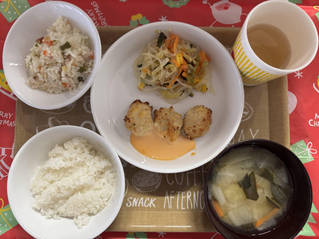 12月23日(火)の給食とおやつ 公開済み: 2025年12月24日更新: 2025年12月24日作成者: sakuranosatoカテゴリー: さくらの里保育園, さくらの里保育園園・給食だより 【給食】 ごはん みそ汁 豆腐ナゲット キャベツのツルツル炒め 【おやつ】 ベーコンピラフ