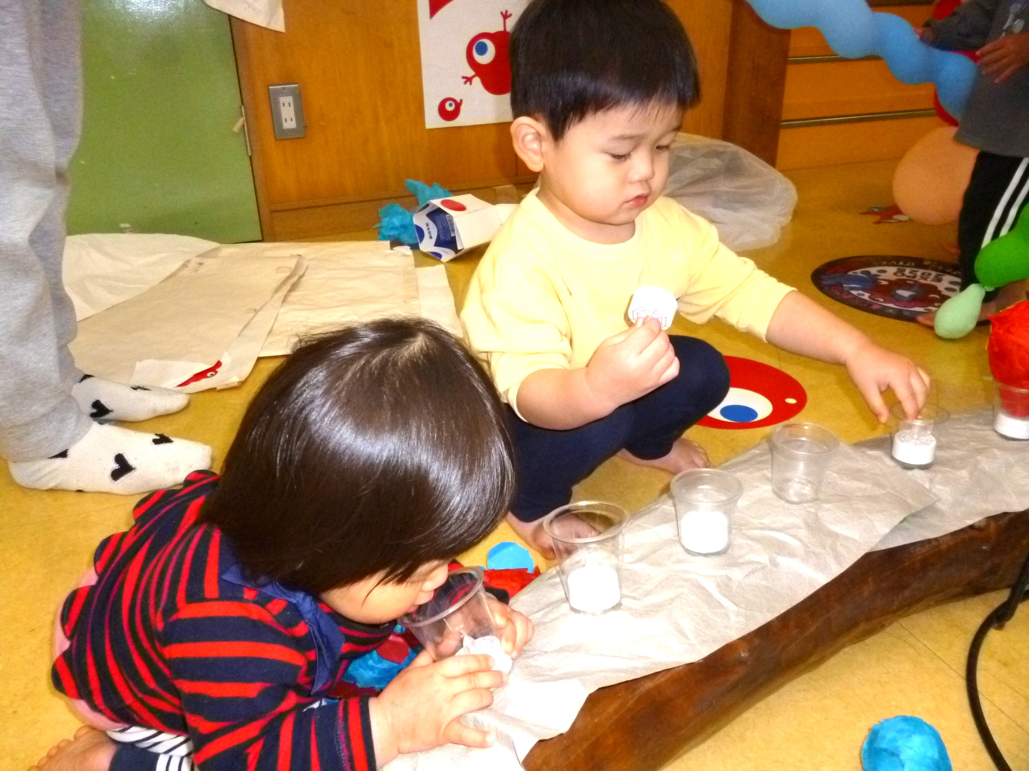 万博って分からないけど楽しいね(うさぎ0歳、1歳児) 公開済み: 2026年1月6日更新: 2026年1月6日作成者: hayamanookaカテゴリー: 端山の丘こども園ブログ 作品展の後、他のクラスの共同製作で遊びました。最初は触ってもいいの?と、戸惑いの顔でしたが、すぐに興味津々で手に取っていました。 関連記事 きらきら綺麗だな✨(さくら、4歳児) 「しゃぼん玉飛んだ~」風がある日で、歌の様にみんなが吹いたシャボン玉がお空(屋根まで)飛んで行ったー!と、大喜びでした。 公開済み: 2025年8月26日更新: 2025年8月26日作成者: hayamanookaカテゴリー: 端山の丘こども園ブログ カルガモカーで、出発!(うさぎ0歳児、1歳児) 醍醐寺へお散歩に行ってきました。出発の時は肌寒かったのですが、日差しがポカポカに変わり、気持ちの良いお散歩になりました。 公開済み: 2022年12月5日更新: 2022年12月5日作成者: hayamanookaカテゴリー: 端山の丘こども園ブログ 一緒にあそぼ!(さくら、4歳児) きりん組(2歳児)と、異年齢交流をしました。優しく手をつないだり、遊ぶ姿は、すごく素敵なお兄さん、お姉さんです。 公開済み: 2024年12月25日更新: 2024年12月25日作成者: hayamanookaカテゴリー: 端山の丘こども園ブログ