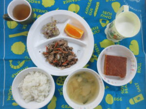 1月6日(火) 給食・おやつ献立 公開済み: 2026年1月6日更新: 2026年1月7日作成者: hayamanookaカテゴリー: 端山の丘こども園給食 <給食> 御飯 みそ汁(油揚げ) 豚肉と昆布の炒め煮(にんじん) 白菜のゆかりあえ オレンジ <おやつ> 牛乳 キャロットケーキ 関連記事 4月28日(金) 給食・おやつ献立 〈給食〉 ・ごはん ・サーモン豆乳シチュー ・厚揚げのケチャップ煮 ・キャベツのパインサラダ 〈おやつ〉 ・牛乳 ・米粉蒸しパン・レーズン 公開済み: 2023年4月28日更新: 2023年4月28日作成者: hayamanookaカテゴリー: 端山の丘こども園給食 10月23日 給食 カレー風味のトマトライス みかん缶 ベビーチーズ 公開済み: 2021年10月23日更新: 2021年10月23日作成者: hayamanookaカテゴリー: 端山の丘こども園給食 2月25日(土) 給食献立 ・豚丼 ・豆腐みそ汁 ・ベビーチーズ ・オレンジ 公開済み: 2023年2月25日更新: 2023年3月4日作成者: hayamanookaカテゴリー: 端山の丘こども園給食