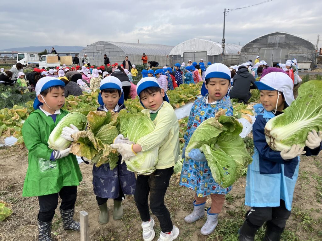 冬野菜の収穫に行きました🥬(ゆり組:5歳児) 公開済み: 2026年1月13日更新: 2026年1月16日作成者: sakuranosatoカテゴリー: さくらの里保育園, さくらの里保育園ブログ 年間を通して行っているキッズファームでの活動。今回はみんなで播種・植え付けをした冬野菜の、収穫をしに行きました。白菜やキャベツ、ブロッコリーに大根などたくさんの野菜が収穫できましたよ☆ 大きくて重い野菜も子ども達はしっかりと持って運んでくれました。明日の収穫祭ではお鍋にして食べようね。