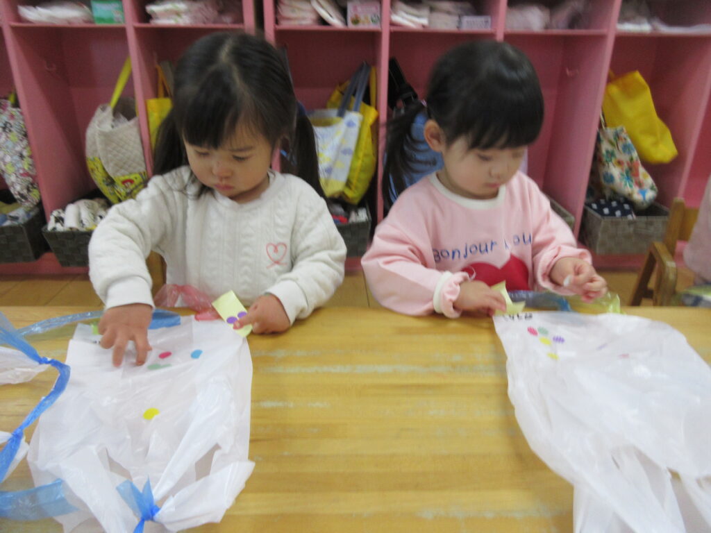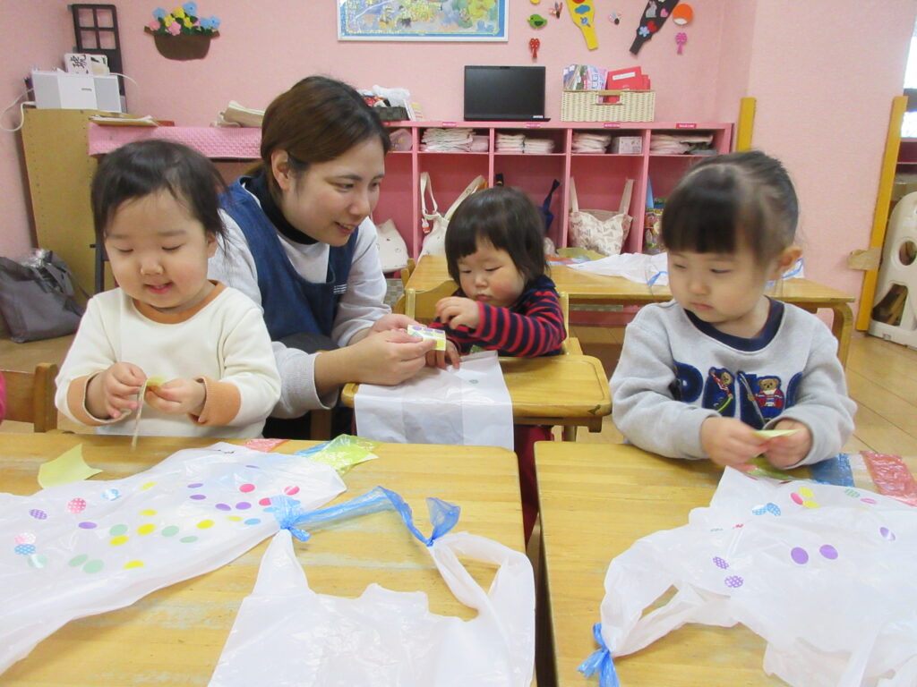 ぺたぺたしたら飛ばそうね(うさぎ0歳児、1歳児) 公開済み: 2026年1月15日更新: 2026年1月15日作成者: hayamanookaカテゴリー: 未分類 ビニール袋にシールを貼って凧作りをしました。完成した凧を持って園庭に出ると、走ったり、風に揺れる様子を見ながら伸び伸びと楽しみました。 関連記事 1月18日給食 トマトおこわ 豆乳コーン鍋 じゃがいものきんぴら りんご 公開済み: 2021年1月20日更新: 2021年1月20日作成者: hayamanookaカテゴリー: 未分類, 端山の丘こども園給食 虫探し♪(うさぎB) 沢山のアリに興味津々!じっと見つめる姿が可愛かったです☆ 公開済み: 2023年5月25日更新: 2023年6月7日作成者: sakuranosatoカテゴリー: さくらの里保育園, さくらの里保育園ブログ, 未分類 3月13日(水)の給食とおやつ 【給食】 ・ピラフ ・ポトフ風スープ ・白身魚の野菜あんかけ 【おやつ】 ・やきそば 公開済み: 2024年3月14日更新: 2024年3月14日作成者: sakuranosatoカテゴリー: さくらの里保育園, さくらの里保育園園・給食だより, 未分類