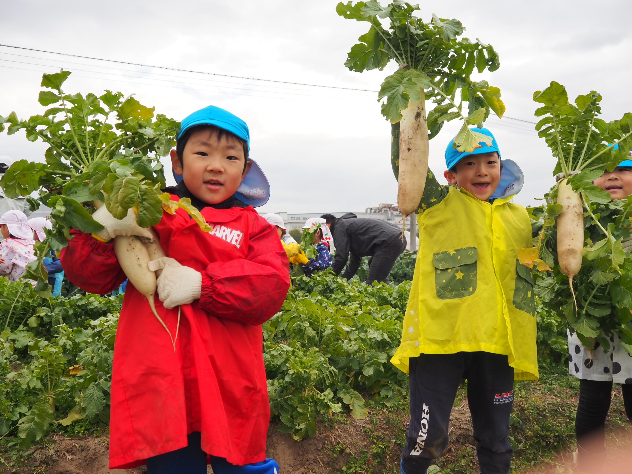 どきどきの収穫!(ゆり、5歳児) 公開済み: 2026年1月19日更新: 2026年1月19日作成者: hayamanookaカテゴリー: 端山の丘こども園ブログ キッズファーム(農業体験)で冬野菜の収穫をしました。秋に種まきをした野菜が、立派に生長していてみんな大喜びでした。収穫した野菜は、鍋にしていただきます。 関連記事 お茶は煮出したらあかんで(うさぎ0歳児、1歳児) 久し振りにすくすく広場で遊びました。すくすく広場でのおままごとが大好きなうさぎ組さん。0歳児クラスのお友達も、しっかり歩いてとても楽しそうに遊んでいました。 公開済み: 2024年3月7日更新: 2024年3月7日作成者: hayamanookaカテゴリー: 端山の丘こども園ブログ 春がそこまで来ています?(きりん、2歳児) 今年度最後のお散歩に行ってきました。少し桜が見れ、春を感じる事が出来ました。 公開済み: 2024年3月28日更新: 2024年3月28日作成者: hayamanookaカテゴリー: 端山の丘こども園ブログ オバケの絵を描きました(きりん、2歳児) 大きい画用紙にクレパスでお絵描きをしましたよ。「せんせい~おばけがいた~!!」と、元気一杯教えてくれました。 公開済み: 2023年6月21日更新: 2023年6月21日作成者: hayamanookaカテゴリー: 端山の丘こども園ブログ