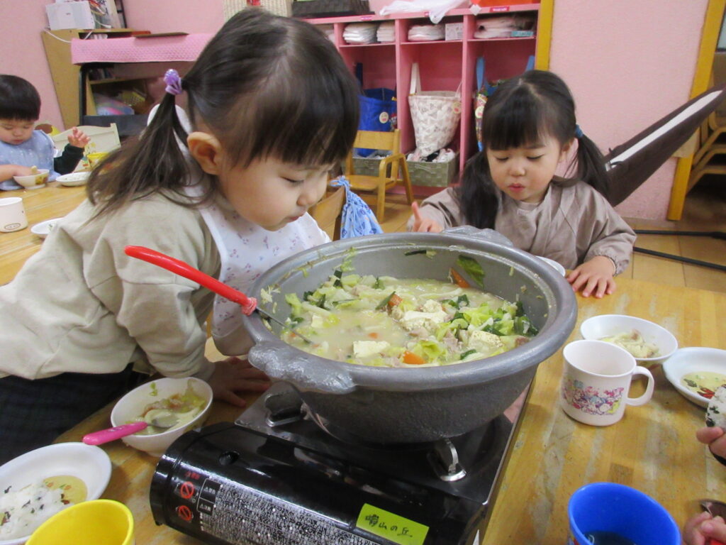 お野菜たくさん食べられた!(うさぎ0歳児、1歳児) 公開済み: 2026年1月21日更新: 2026年1月21日作成者: hayamanookaカテゴリー: 端山の丘こども園ブログ さくら組さんとゆり組さんが収穫した野菜を使ってお鍋パーティーをしました。スティック状に切られた野菜をポキポキ折ったり、匂いを嗅いだりしていましたよ。そして給食の時間、そのお鍋をみんなでいただきました。 関連記事 湯気がもわもわ出てる!(たんぽぽ、3歳児) 昔ながらの行事、お餅つきを間近で見ました。つきたてのお餅にも触れ、とても良い経験が出来た一日となりました。 公開済み: 2023年12月22日更新: 2023年12月22日作成者: hayamanookaカテゴリー: 端山の丘こども園ブログ 黄色い実を目指してむきむきむき(たんぽぽ、3歳児)) 給食室のお手伝いで、トウモロコシの皮をむきました。「明日の給食楽しみ~!!」と、”食への期待”も膨らみます? 公開済み: 2023年7月31日更新: 2023年7月31日作成者: hayamanookaカテゴリー: 端山の丘こども園ブログ どんなランチにする~?(たんぽぽ、3歳児) キッツでお絵描きを楽しみました。友達と一緒に、ランチプレートにたくさんの食べ物を描きました。 公開済み: 2025年3月28日更新: 2025年3月28日作成者: hayamanookaカテゴリー: 端山の丘こども園ブログ
