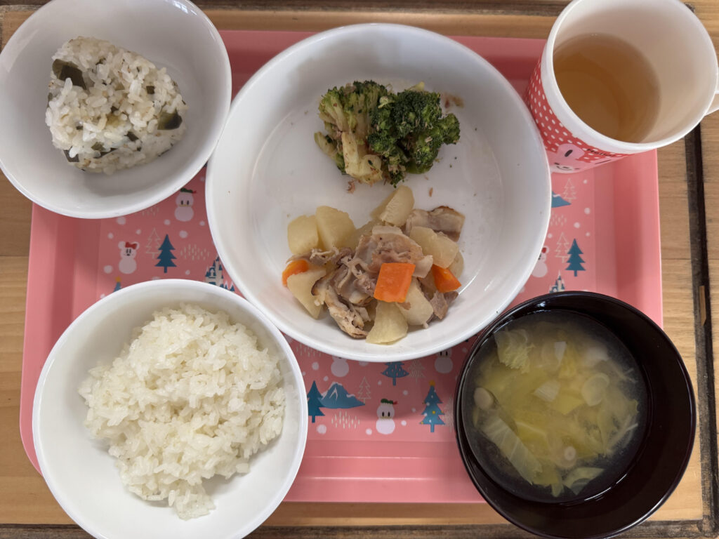 1月22日(木)の給食とおやつ 公開済み: 2026年1月22日更新: 2026年1月22日作成者: sakuranosatoカテゴリー: さくらの里保育園, さくらの里保育園園・給食だより 【給食】 ごはん みそ汁 豚肉と大根の煮物 ブロッコリーのおかか和え 【おやつ】 昆布おにぎり