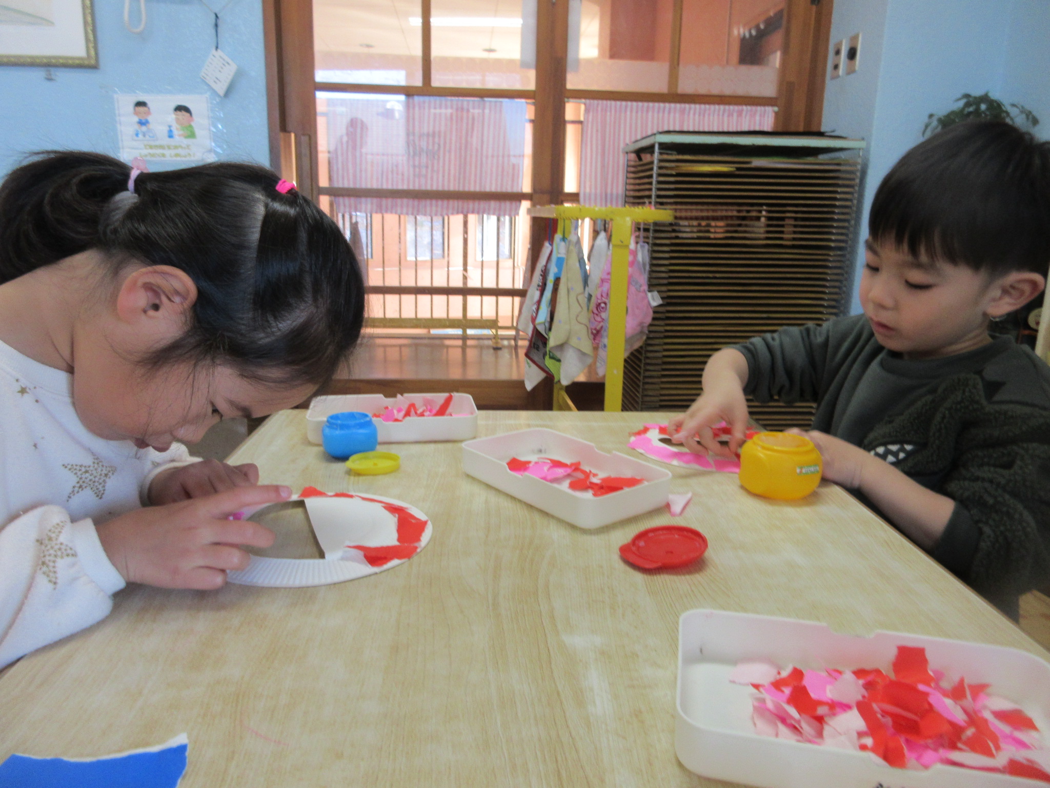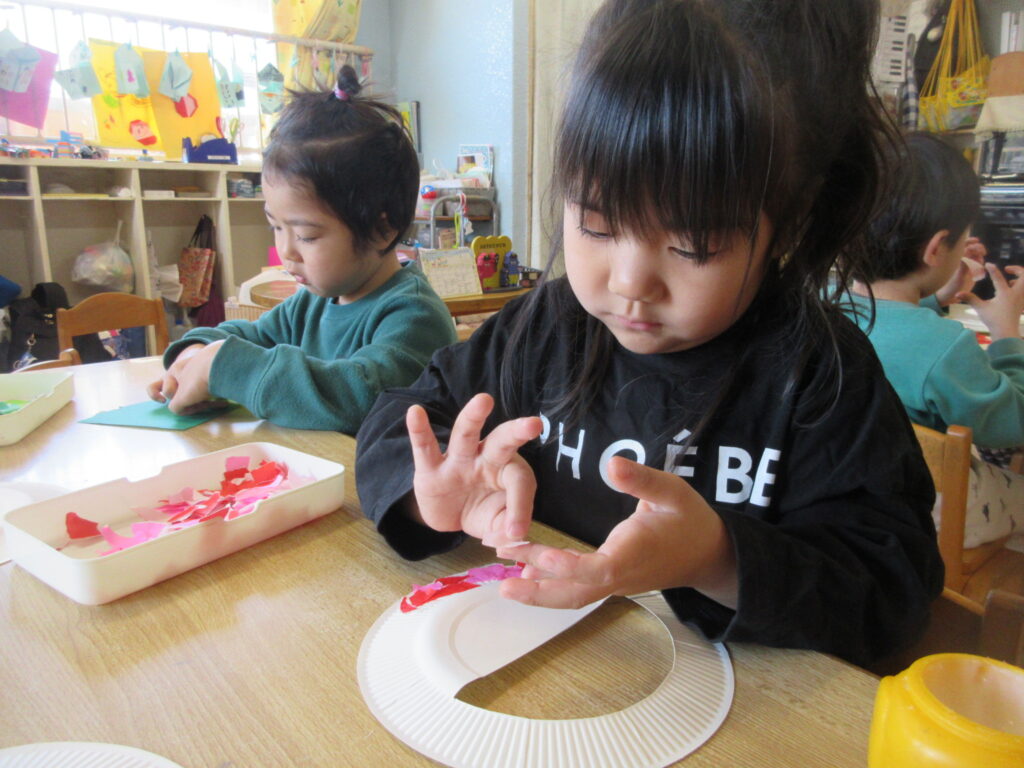 眼差しが真剣!(さくら、4歳児) 公開済み: 2026年1月28日更新: 2026年1月28日作成者: hayamanookaカテゴリー: 端山の丘こども園ブログ 鬼のお面を作りました。千切った折り紙を糊で紙皿に貼っていきます。丁寧に制作できるようになりました。 関連記事 ☆様々な虫が活動開始☆(たんぽぽ・3歳児) 園庭に出ると、みんなの好きな虫にたくさん出会います。 さぁどんな虫がいるのかなぁ。。。 公開済み: 2022年5月25日更新: 2022年5月25日作成者: hayamanookaカテゴリー: 未分類, 端山の丘こども園, 端山の丘こども園ブログ 頼れるぅ~?(たんぽぽ、3歳児) 公開済み: 2022年10月24日更新: 2022年10月26日作成者: hayamanookaカテゴリー: 端山の丘こども園アルバム, 端山の丘こども園ブログ とっても美味しそう~(さくら、4歳児) そうめんデコレーションをしました。クラスで話し合った具材をトッピングしました。 公開済み: 2023年9月8日更新: 2023年9月8日作成者: hayamanookaカテゴリー: 端山の丘こども園ブログ