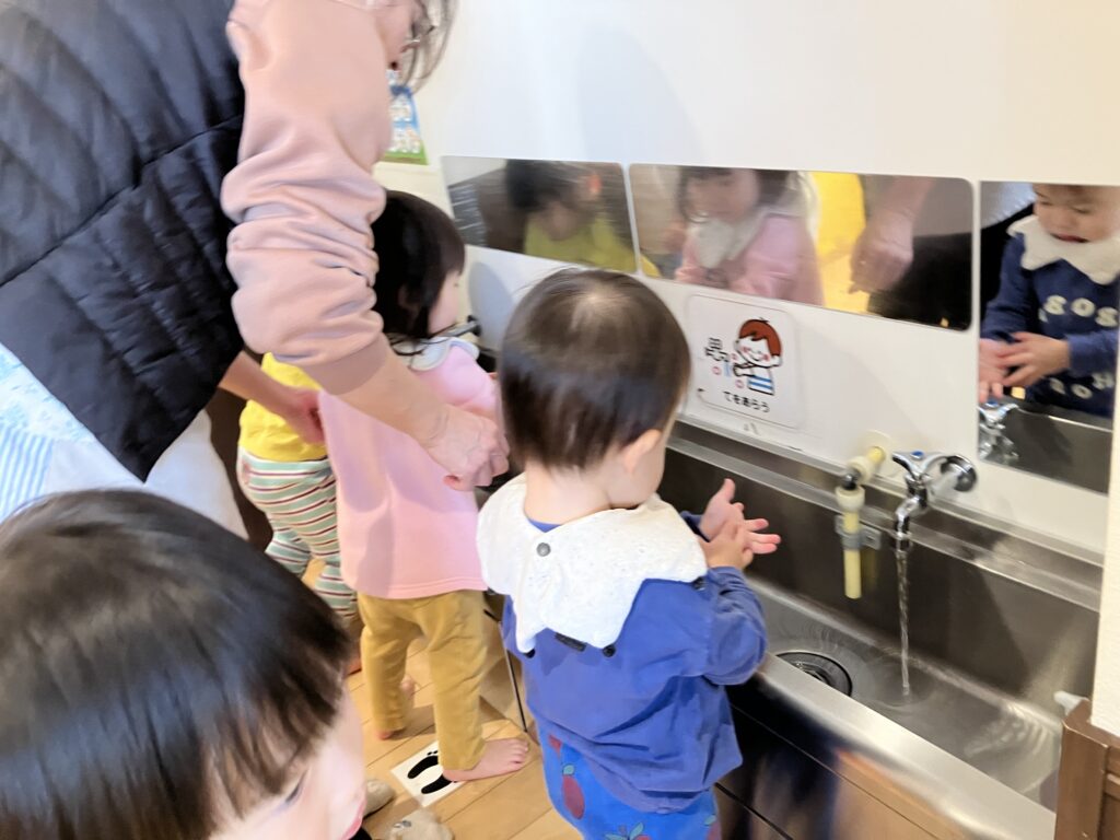 みんなで並んで、手を洗いましょ~☆(うさぎ組:1歳児) 公開済み: 2026年2月9日更新: 2026年2月26日作成者: sakuranosatoカテゴリー: さくらの里保育園, さくらの里保育園ブログ 「じゅんばん・じゅんばん♪」と友だちの後ろに並んで待つ子ども達。手のひら・指の先・手首まで、泡を付けて手をピカピカにしましょう☆