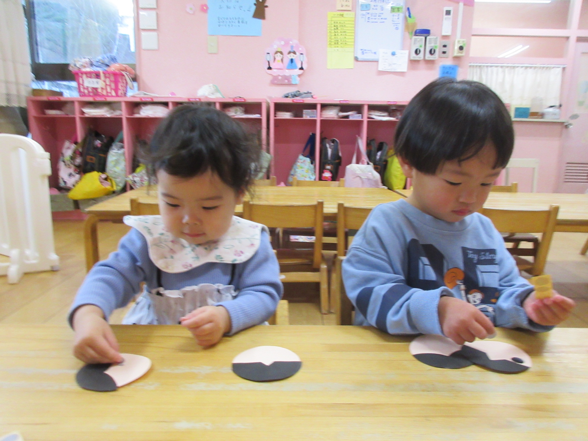 ひな祭り制作(うさぎ0歳児、1歳児) 公開済み: 2026年2月20日更新: 2026年2月20日作成者: hayamanookaカテゴリー: 未分類, 端山の丘こども園ブログ ホールに飾られてるお雛様を見に行った後、お部屋でお雛様制作をしました。目や口の位置を考えながら貼ったり、洋服となるお花紙をびりびり破り、感触を楽しんでいました。 関連記事 思い思いの秋?(きりん、2歳児) 公開済み: 2022年11月14日更新: 2022年11月14日作成者: hayamanookaカテゴリー: 未分類, 端山の丘こども園ブログ 来年はあたしたちが植えるんだね!(さくら、4歳児) 田植えの見学に行きました。来年が楽しみです。 公開済み: 2023年6月30日更新: 2023年6月30日作成者: hayamanookaカテゴリー: 未分類, 端山の丘こども園ブログ 優しくしてくれてありがとう✨(きりん、2歳児) さくら組(4歳児)さんと交流会をしました。お兄ちゃん、お姉ちゃん達がお部屋までお迎えに来てくれて、きりん、たんぽぽペアでさくら組まで行きました。ラキューやカプラなど、きりん組だけでは出来ないダイナミックな遊びに、みんな大 […] 公開済み: 2024年12月19日更新: 2024年12月19日作成者: hayamanookaカテゴリー: 未分類, 端山の丘こども園ブログ