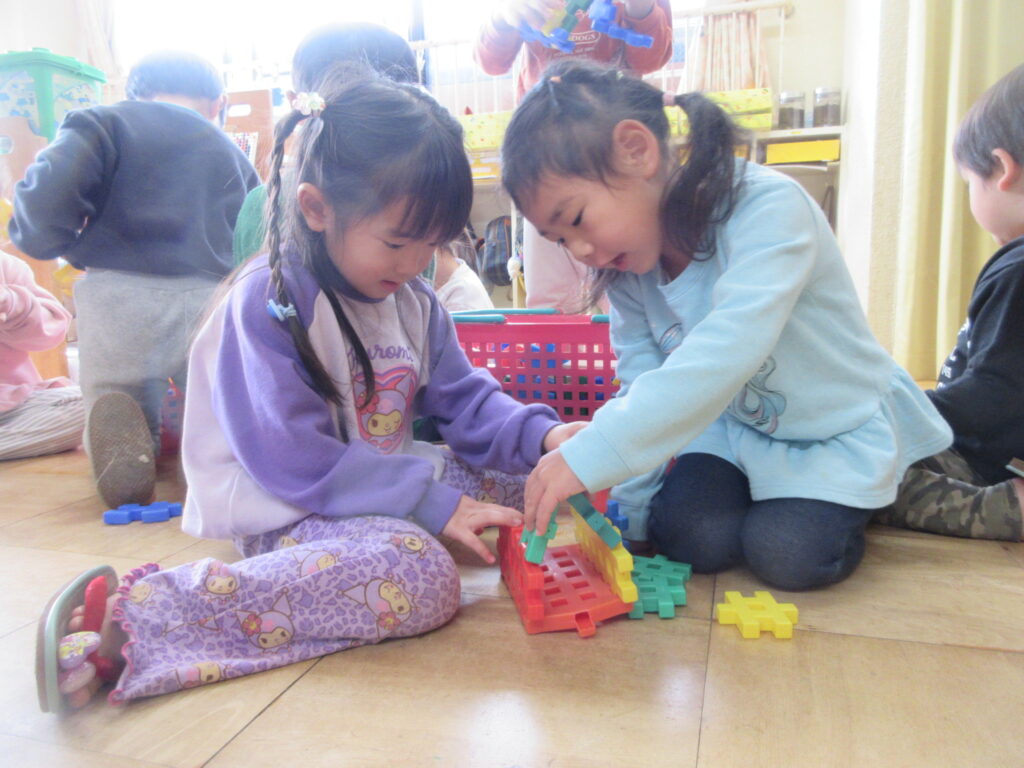 ブロック大好き!(たんぽぽ、3歳児) 公開済み: 2026年2月20日更新: 2026年2月20日作成者: hayamanookaカテゴリー: 端山の丘こども園ブログ ブロックで長ーい電車を作ったり、タイヤを転がしたりと、お部屋遊びもとっても楽しんでいます! 関連記事 何か・・・すごいね!(たんぽぽ、3歳児) 大好きな消防車を近くで見られて、すごーく大喜びの子供達でした! 公開済み: 2024年7月31日更新: 2024年8月7日作成者: hayamanookaカテゴリー: 端山の丘こども園ブログ 上手に塗れるよ✨(ゆり、5歳児) 「お勉強みたいにしてるねん!」と、みんなで並んで塗り絵に夢中です。 公開済み: 2024年4月8日更新: 2024年4月8日作成者: hayamanookaカテゴリー: 端山の丘こども園ブログ また一緒に遊ぼうね?(さくら、4歳児) きりん組さんと交流しました。体操を教えてあげたり、一緒にお弁当を食べたり、すっかりお兄ちゃん、お姉ちゃんの顔になっていました!! 公開済み: 2023年12月14日更新: 2023年12月14日作成者: hayamanookaカテゴリー: 端山の丘こども園ブログ