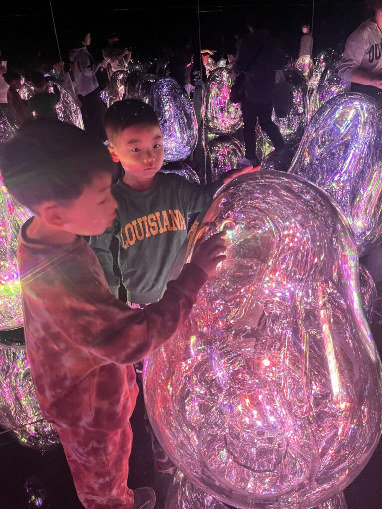 ワクワクが止まらない! 公開済み: 2026年2月20日更新: 2026年2月20日作成者: hayamanookaカテゴリー: 端山の丘こども園学童 チームラボ京都へ行き、五感をフルに使って楽しんできました。自分の描いた絵が、壁一面を泳ぐのが印象的でした。 関連記事 すごいね! ミャクミャクの体に使うお花紙の花を、お花紙メーカーで作りました。平らなお花紙が一瞬で折りたたまれる事に驚いているみんな。仕組みを見て「なるほど、そうなのか!」と感心していました。 公開済み: 2025年12月15日更新: 2025年12月15日作成者: hayamanookaカテゴリー: 端山の丘こども園学童 もはや科学実験? 夏の最後に色水遊び。光りそうな蛍光色を目指して調合していました。 公開済み: 2025年9月29日更新: 2025年9月29日作成者: hayamanookaカテゴリー: 端山の丘こども園学童 ノリノリやん♬ 公開済み: 2021年9月21日更新: 2021年9月21日作成者: hayamanookaカテゴリー: 端山の丘こども園学童