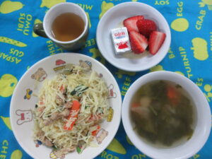 2月21日(土) 給食献立 公開済み: 2026年2月21日更新: 2026年2月27日作成者: hayamanookaカテゴリー: 端山の丘こども園給食 <給食> 焼きビーフン(カレー) かぶのスープ いちご ベビーチーズ 関連記事 9月17日(水)給食・おやつ献立 <給食> 御飯 みそ汁(なす・あげ) さわらの利休焼き(ごま) かぼちゃのサラダ なし <おやつ> 牛乳 米粉蒸しパン(みかん) 公開済み: 2025年9月17日更新: 2025年9月20日作成者: hayamanookaカテゴリー: 端山の丘こども園給食 7月14日(木) 給食・おやつ献立 今日は夏まつりでした♪ 給食もおまつり仕様で、子ども達のテンションもUP↑↑↑ ・焼きそば ・フランクフルト ・ゆでとうもろこし ・冷やしきゅうり 〈おやつ〉 ・幼児→チューペット ・乳児→スイカ型クッキー 公開済み: 2022年7月14日更新: 2022年7月15日作成者: hayamanookaカテゴリー: 端山の丘こども園給食 11月19日(土) 給食献立 ・野菜と納豆のそぼろ丼 ・ベビーチーズ ・オレンジ 公開済み: 2022年11月19日更新: 2022年11月21日作成者: hayamanookaカテゴリー: 端山の丘こども園給食