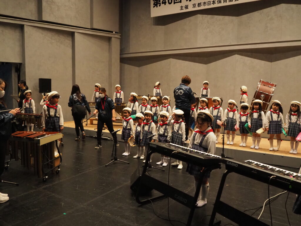 ドキドキするね!(さくら、4歳児) 公開済み: 2026年2月26日更新: 2026年2月26日作成者: hayamanookaカテゴリー: 端山の丘こども園ブログ ロームシアター京都、サウスホールにて行われた音楽フェスティバル。舞台上で幕が上がる前の様子です。ドキドキしていましたが、幕が上がると自信たっぷりの子ども達でした。 関連記事 下ごしらえはまかして!(うさぎ0歳児、1歳児) 給食室の先生と一緒にクッキングをして「ミックスジュース」を作りました。セロリ、バナナ、リンゴをポキポキと折った後、ミキサーの中に入れて攪拌すると美味しいミックスジュースの完成!みんなで美味しくいただきました。 公開済み: 2025年8月25日更新: 2025年8月25日作成者: hayamanookaカテゴリー: 端山の丘こども園ブログ ぱこぱこぱんぱん♪(うさぎ0歳児、1歳児) お部屋でリズム遊び(カスタネット)をしました。指にゴムを通して、上手に鳴らして遊んでいました。 公開済み: 2023年7月7日更新: 2023年7月7日作成者: hayamanookaカテゴリー: 端山の丘こども園ブログ ちゃんと回るかな?(さくら、4歳児) お正月のコマ制作をしました。紙コップを切って開き、裏にペットボトルのキャップをつけて、クルクルー♪と回して遊びました。 公開済み: 2024年1月11日更新: 2024年1月11日作成者: hayamanookaカテゴリー: 端山の丘こども園ブログ