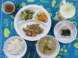 2月26日(木) 給食・おやつ献立 公開済み: 2026年2月26日更新: 2026年2月27日作成者: hayamanookaカテゴリー: 端山の丘こども園給食 <給食> 御飯 みそ汁(厚揚げ・だいこん) 肉じゃが・カレー味(豚肉) なばなのごま和え(キャベツ) フルーツカクテル(キウイ) <おやつ> 牛乳 おにぎり(じゃこおかか) 関連記事 6月4日(土) 給食献立 焼うどん みかん缶 公開済み: 2022年6月4日更新: 2022年6月11日作成者: hayamanookaカテゴリー: 端山の丘こども園給食 11月14日(金) 給食・おやつ献立 <給食> 御飯 トマトスープ(じゃがいも) イタリアのミラノ風チキン 切干大根のサラダ(しらす) フルーツカクテル(キウイ) 今日は「イタリア」が発祥のミラノ風チキンを提供しました! パン粉に粉チーズパセリを […] 公開済み: 2025年11月14日更新: 2025年11月19日作成者: hayamanookaカテゴリー: 端山の丘こども園給食 8月27日 給食 ごはん ミートボールのカレーシチュー ピーマンのツナあえ(ごま) パイン缶 公開済み: 2021年8月27日更新: 2021年8月27日作成者: hayamanookaカテゴリー: 端山の丘こども園給食