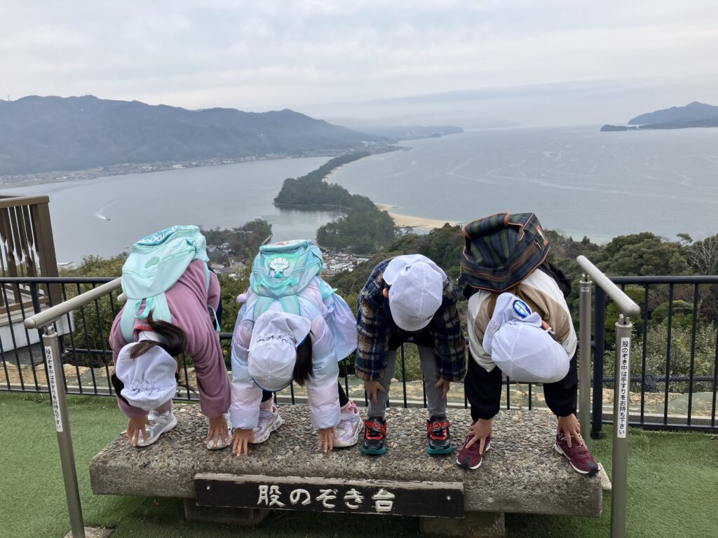 アクティブラーニングで調べてきた天橋立に行きました。楽しみにしていた股覗きでは、逆さまの天橋立に「龍に見えた!」「調べてきたのとそっくりや!」など、たくさんの声が聞こえてきました。