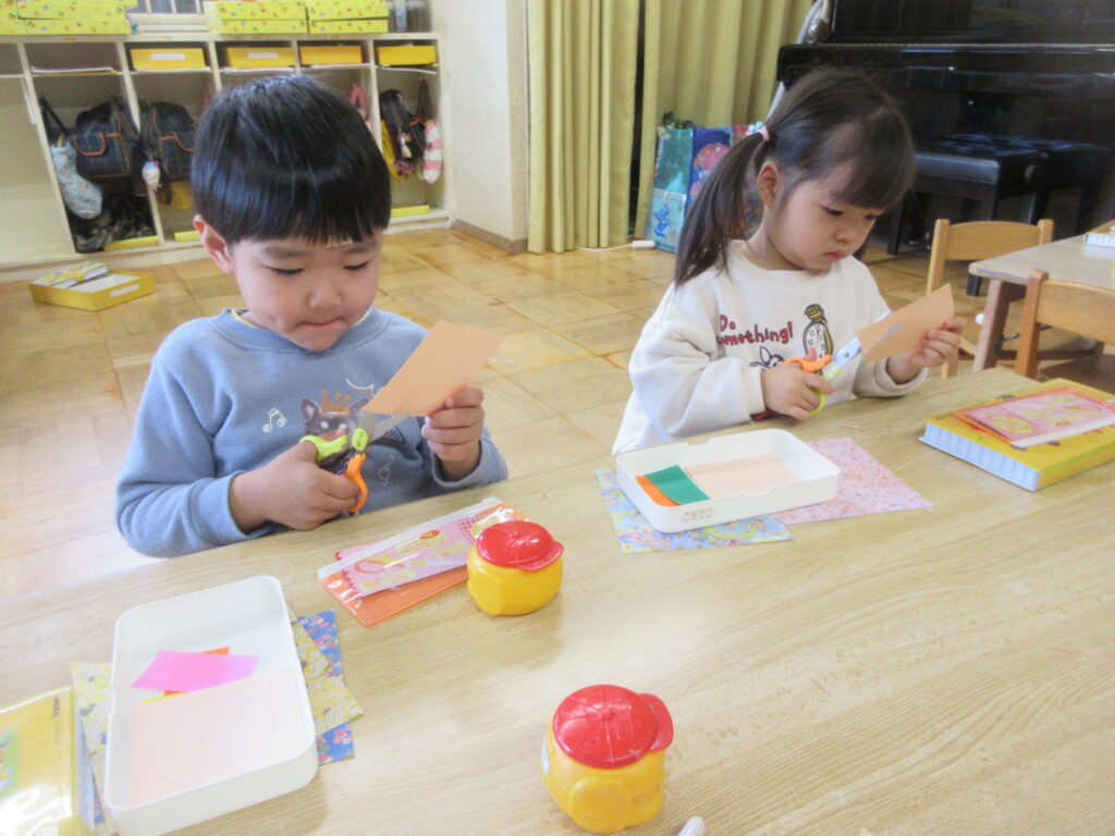 丸切り頑張りました!(たんぽぽ) 公開済み: 2026年3月3日更新: 2026年3月3日作成者: hayamanookaカテゴリー: 端山の丘こども園ブログ 二回目のハサミの丸切り。画用紙に書いた線の上を丁寧に切っていきました。前回よりも上手に切れている子ども達が増えてきました。 関連記事 楽しく踊ろう!(きりん、2歳児) 運動会のお遊戯練習。とっても楽しんでドラえもんを踊っていました。 公開済み: 2023年9月28日更新: 2023年9月28日作成者: hayamanookaカテゴリー: 端山の丘こども園ブログ たくさんかけて~(さくら、4歳児) まだまだ残暑が厳しいですが、冷たーいカキ氷のおやつで、涼しいひと時を過ごしました。 公開済み: 2024年9月9日更新: 2024年9月9日作成者: hayamanookaカテゴリー: 端山の丘こども園ブログ みんなで一緒は楽しいな!(きりん、2歳児) 園外保育でさくらの里保育園に行ってきました。ホールで集団遊びリトミックをしたり、パラバルーンも体験させてもらいました。大きなパラバルーンを広げたり、中に入ったり、みんなとっても楽しみました。 公開済み: 2025年3月11日更新: 2025年3月12日作成者: hayamanookaカテゴリー: 端山の丘こども園ブログ