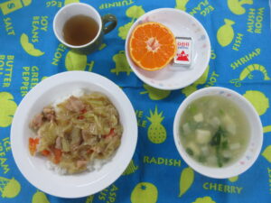 3月7日(土) 給食献立 公開済み: 2026年3月7日更新: 2026年3月7日作成者: hayamanookaカテゴリー: 端山の丘こども園給食 <給食> 照り焼き野菜丼 豆腐のスープ(だいこん・青菜) みかん ベビーチーズ 関連記事 10月2日(木) 給食・おやつ献立 <給食> 御飯 鶏肉の竜田揚げ 白菜とほうれん草の磯和え りんご はるさめスープ(だいこん) <おやつ> 牛乳 きな粉ごまトースト 公開済み: 2025年10月2日更新: 2025年10月10日作成者: hayamanookaカテゴリー: 端山の丘こども園給食 5月17日(土) 給食献立 <給食> ナポリタン 野菜スープ バナナ ベビーチーズ 公開済み: 2025年5月17日更新: 2025年5月19日作成者: hayamanookaカテゴリー: 端山の丘こども園給食 2月26日(木) 給食・おやつ献立 <給食> 御飯 みそ汁(厚揚げ・だいこん) 肉じゃが・カレー味(豚肉) なばなのごま和え(キャベツ) フルーツカクテル(キウイ) <おやつ> 牛乳 おにぎり(じゃこおかか) 公開済み: 2026年2月26日更新: 2026年2月27日作成者: hayamanookaカテゴリー: 端山の丘こども園給食