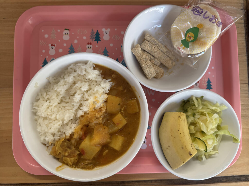 3月12日(木)の給食とおやつ 公開済み: 2026年3月12日更新: 2026年3月12日作成者: sakuranosatoカテゴリー: さくらの里保育園, さくらの里保育園園・給食だより 【給食】 カレーライス キャベツのパインサラダ バナナ 【おやつ】 きな粉棒 ぱりんこ