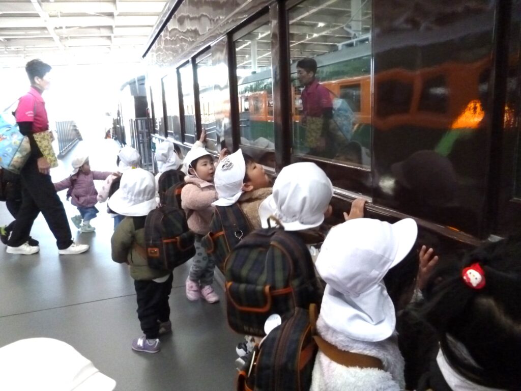 電車が一杯!(きりん、2歳児) 公開済み: 2026年3月16日更新: 2026年3月16日作成者: hayamanookaカテゴリー: 端山の丘こども園ブログ 園外保育で鉄道博物館に行きました。本物の電車に触れたり、SLスチーム号に乗って楽しみました。子ども達の「また、行こうね」の笑顔が可愛かったです。 関連記事 2023年の抱負(ゆり、5歳児)) 新年の抱負を絵馬に書きました。2023年、目標に向かって頑張れ!! 公開済み: 2023年1月6日更新: 2023年1月6日作成者: hayamanookaカテゴリー: 端山の丘こども園ブログ 参観日、緊張したね(さくら、4歳児) 保育参観がありました。日頃園で取り組んでいる様子を直接見てもらい、また、一緒に体を動かして楽しみました。 公開済み: 2025年6月18日更新: 2025年6月18日作成者: hayamanookaカテゴリー: 端山の丘こども園ブログ ボールと友達になろうね(ゆり、5歳児) サッカー練習が始まりました。 ボールに慣れる所からで、少しずつ蹴って・走って・追いかけて と頑張ります!! 公開済み: 2023年10月19日更新: 2023年10月19日作成者: hayamanookaカテゴリー: 端山の丘こども園ブログ