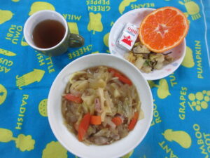 3月21日(土) 給食献立 公開済み: 2026年3月21日更新: 2026年4月4日作成者: hayamanookaカテゴリー: 端山の丘こども園給食 <給食> ラーメン(豚肉・キャベツ) はくさいの昆布和え ベビーチーズ みかん 関連記事 5月16日(木)給食・おやつ献立 <給食> 御飯 みそ汁(キャベツ・コーン) さけのコーンフレークフライ きんぴらごぼう(いんげん・ごま) ヨーグルト(バナナ) <おやつ> 牛乳 チヂミ(小松菜・豆腐・ごま) 公開済み: 2024年5月16日更新: 2024年5月23日作成者: hayamanookaカテゴリー: 端山の丘こども園給食 1月17日 給食 ハヤシライス キャベツとチンゲン菜のサラダ ベビーチーズ 公開済み: 2022年1月18日更新: 2022年1月18日作成者: hayamanookaカテゴリー: 端山の丘こども園給食 5月8日(水)給食・おやつ給食 <給食> 御飯 みそ汁(だいこん・あげ) 肉じゃが(豚肉) チンゲン菜のしらすサラダ(キャベツ) バナナ <おやつ> 牛乳 おにぎり(さけ・ごま) 公開済み: 2024年5月8日更新: 2024年5月13日作成者: hayamanookaカテゴリー: 端山の丘こども園給食