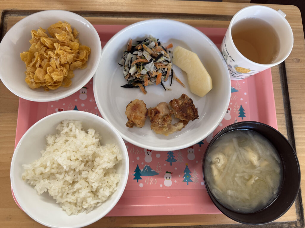 3月27日(金)の給食とおやつ 公開済み: 2026年3月27日更新: 2026年3月27日作成者: sakuranosatoカテゴリー: さくらの里保育園, さくらの里保育園園・給食だより 【給食】 ごはん みそ汁 鶏のから揚げ ひじきの彩りサラダ 【おやつ】 マシュマロコーンフレーク