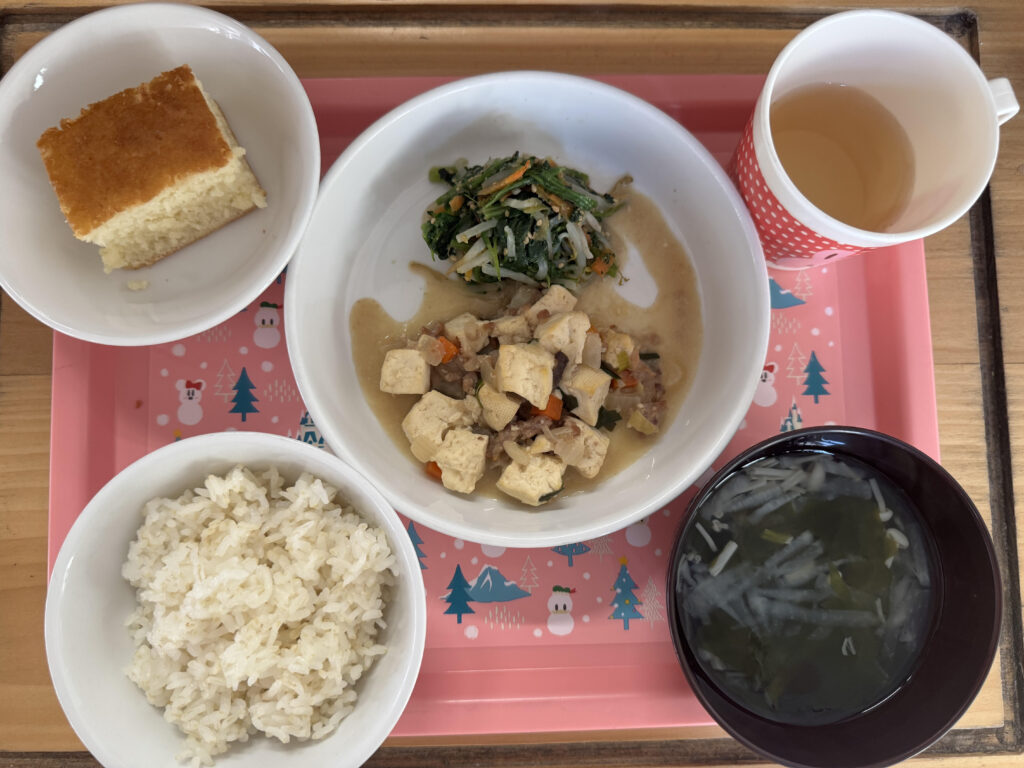 4月3日(金)の給食とおやつ 公開済み: 2026年4月3日更新: 2026年4月3日作成者: sakuranosatoカテゴリー: さくらの里保育園, さくらの里保育園園・給食だより 【給食】 ごはん わかめスープ マーボー豆腐 もやしのナムル 【おやつ】 ホットケーキ