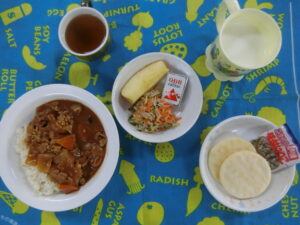 1月14日(水) 給食・おやつ献立 今日は1月のお誕生日会でした!1月生まれのお友だちお誕生日おめでとうございます♡ <給食> コーンライス コーンクリームスープ 煮込みハンバーグ フライドポテト ゆでブロッコリー みかん <おやつ> […] 公開済み: 2026年1月14日更新: 2026年1月15日作成者: hayamanookaカテゴリー: 端山の丘こども園給食