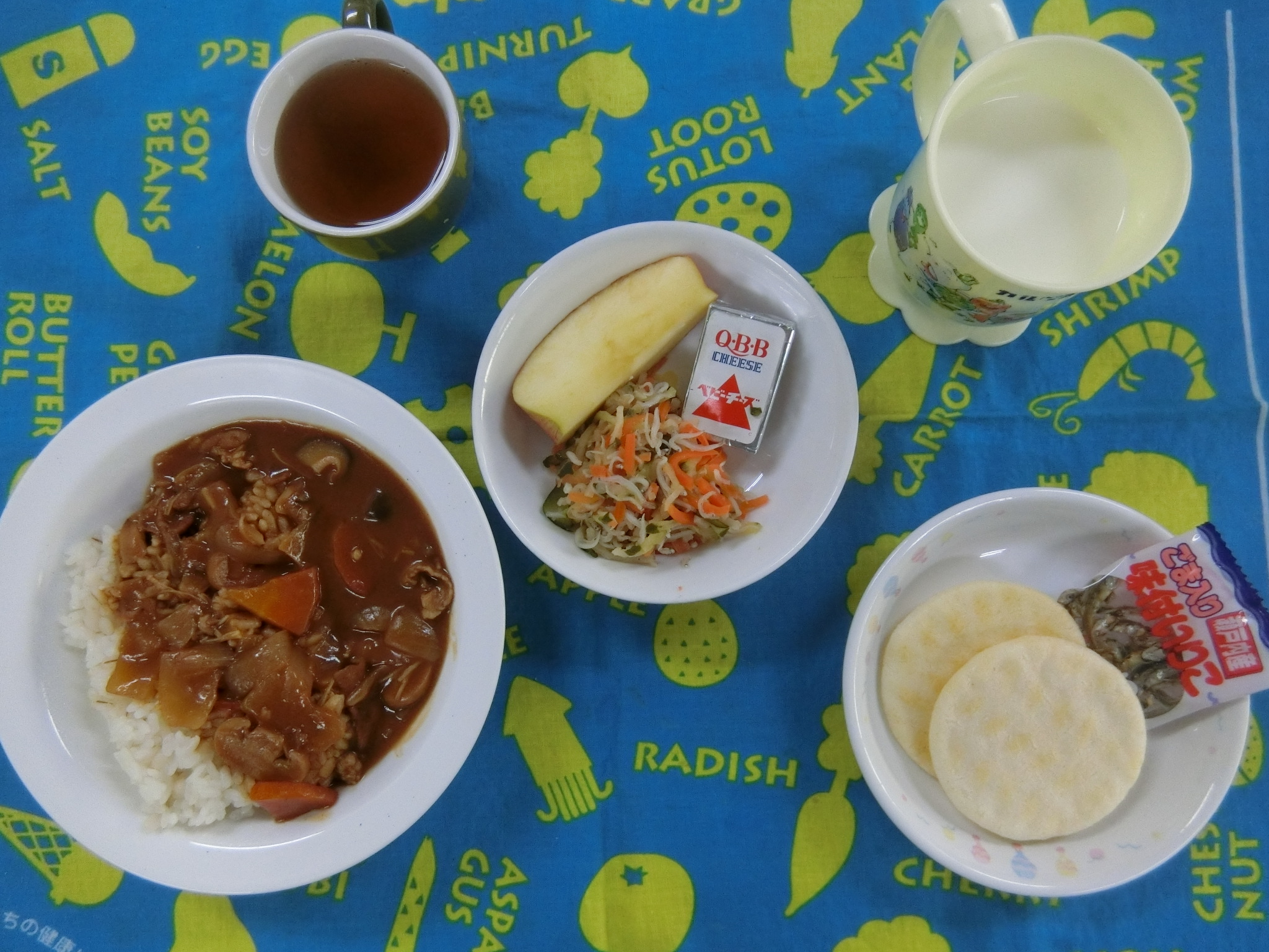 4月8日(水) 給食・おやつ献立 公開済み: 2026年4月8日更新: 2026年4月24日作成者: hayamanookaカテゴリー: 端山の丘こども園給食 <給食> ハヤシライス 切干大根のサラダ(しらす干し) ベビーチーズ りんご <おやつ> 牛乳 塩せんべい おやつ小魚(ごま) 関連記事 1月5日給食 ご飯 おかず汁 鰆のもやしあんかけ 蒸しブロッコリー フルーツカクテル 公開済み: 2021年1月5日更新: 2021年1月5日作成者: hayamanookaカテゴリー: 端山の丘こども園給食 1月14日(水) 給食・おやつ献立 今日は1月のお誕生日会でした!1月生まれのお友だちお誕生日おめでとうございます♡ <給食> コーンライス コーンクリームスープ 煮込みハンバーグ フライドポテト ゆでブロッコリー みかん <おやつ> […] 公開済み: 2026年1月14日更新: 2026年1月15日作成者: hayamanookaカテゴリー: 端山の丘こども園給食 3月18日(土) 給食献立 ・焼きそば ・中華スープ(チンゲン菜・えのき) ・ベビーチーズ ・オレンジ 公開済み: 2023年3月18日更新: 2023年3月31日作成者: hayamanookaカテゴリー: 端山の丘こども園給食