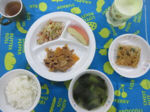 4月10日(金) 給食・おやつ献立 公開済み: 2026年4月10日更新: 2026年4月24日作成者: hayamanookaカテゴリー: 端山の丘こども園給食 <給食> 御飯 みそ汁(さつまいも・こまつな) 豚肉とたまねぎのソテー キャベツのゆかりあえ りんご <おやつ> 牛乳 大根餅(切干し・えび) 関連記事 12月8日給食 ご飯 押し麦のスープ 鯖のさっぱり甘酢ソース 焼きかぼちゃ フルーツヨーグルト 公開済み: 2020年12月8日更新: 2020年12月8日作成者: hayamanookaカテゴリー: 端山の丘こども園給食 4月20日(木) 給食・おやつ献立 〈給食〉 ・ごはん ・クラムチャウダー(豆乳) ・さけのケチャップあえ ・キャベツとしらすのサラダ ・りんご 〈おやつ〉 ・牛乳 ・焼きビーフン 公開済み: 2023年4月20日更新: 2023年4月21日作成者: hayamanookaカテゴリー: 端山の丘こども園給食 11月14日(月) 給食・おやつ献立 〈給食〉 ・さけとひじきの混ぜごはん ・豆腐のすまし汁 ・鶏肉のマーマレード焼き ・厚揚げの中華煮 〈おやつ〉 ・牛乳 ・スイートポテト(りんご・米粉) 公開済み: 2022年11月14日更新: 2022年11月21日作成者: hayamanookaカテゴリー: 端山の丘こども園給食
