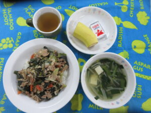 4月11日(土) 給食献立 公開済み: 2026年4月11日更新: 2026年4月24日作成者: hayamanookaカテゴリー: 端山の丘こども園給食 <給食> 豚丼 豆腐スープ(もやし・にら) ベビーチーズ バナナ 関連記事 ☆10月お誕生会 今日のメニューはエビさんにたこさんかにさんがのった 楽しいランチプレートでした。 チキンライス 野菜スープ 春雨サラダ ウインナー・柿 公開済み: 2020年10月21日更新: 2020年10月21日作成者: hayamanookaカテゴリー: 端山の丘こども園給食 2月13日(火) 給食・おやつ献立 〈給食〉 ・ごはん ・すまし汁(鶏肉・大根) ・さばの塩焼き ・冬の焼き野菜 ・りんご 〈おやつ〉 ・牛乳 ・スイートポテト 公開済み: 2024年2月13日更新: 2024年2月14日作成者: hayamanookaカテゴリー: 端山の丘こども園給食 8月2日(土) 給食献立 <給食> カレー風味のトマトライス もやしときゅうりの酢の物 ベビーチーズ バナナ 公開済み: 2025年8月2日更新: 2025年8月5日作成者: hayamanookaカテゴリー: 端山の丘こども園給食